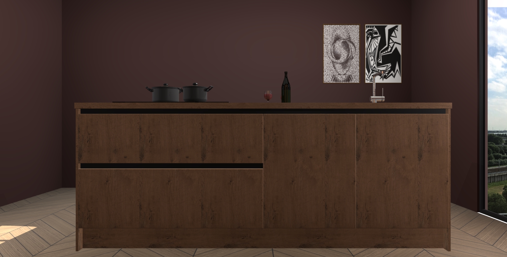 Inclusief plinten, stelpoten en werkblad