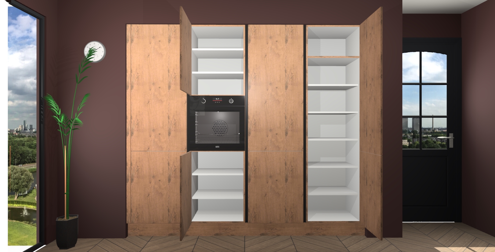 Dankzij de vele opbergruimte wordt praktisch elke centimeter van uw keuken optimaal benut, wat de ruimte een opgeruimde en sfeervolle uitstraling geeft. Bovendien zijn we er trots op dat we een snelle levering van 7 weken en een vaste lage prijs kunnen bieden, zodat u deze prachtige keuken in een mum van tijd in huis hebt!