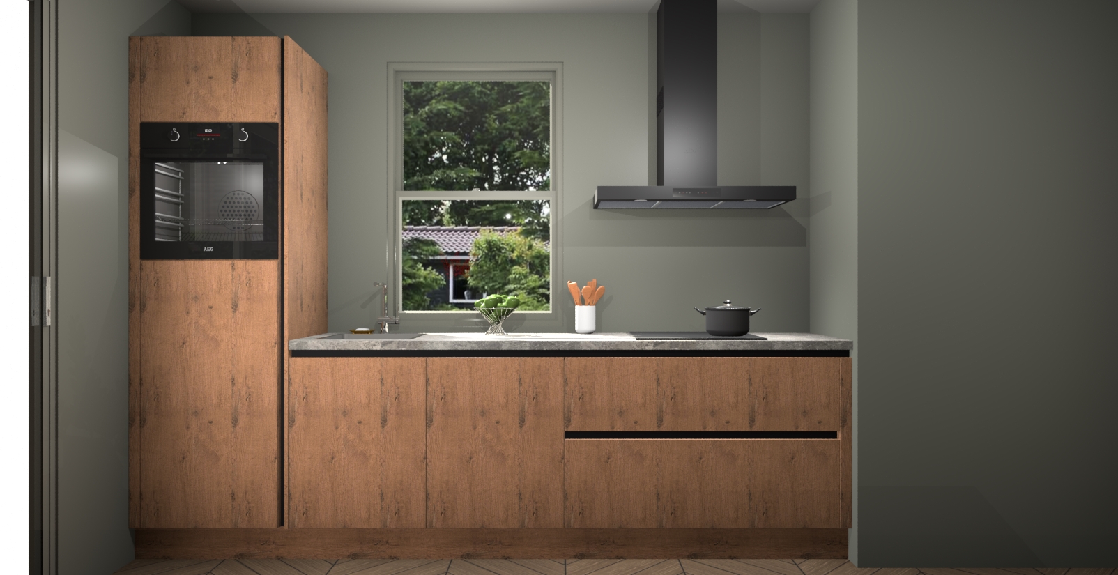 Een stijlvolle en praktische keuken als deze mag gezien worden. Dankzij de prachtige Astoria Eiken afwerking wordt de keuken gemakkelijk het middelpunt van uw huis - hij ziet er geweldig uit onder allerlei lichtomstandigheden, van dag tot nacht!