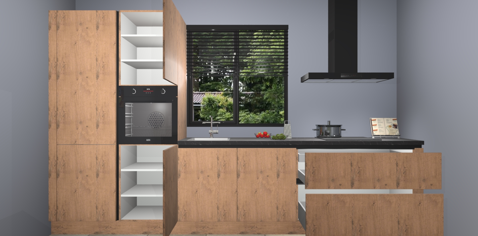 In deze box zijn alle kleuren verzameld van de deuren en werkbladen. Vraag de gratis kleurenbox aan en kijk thuis rustig verder!