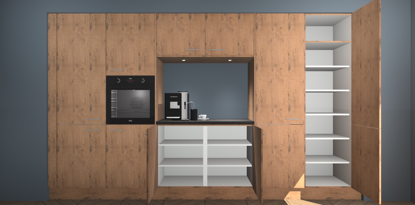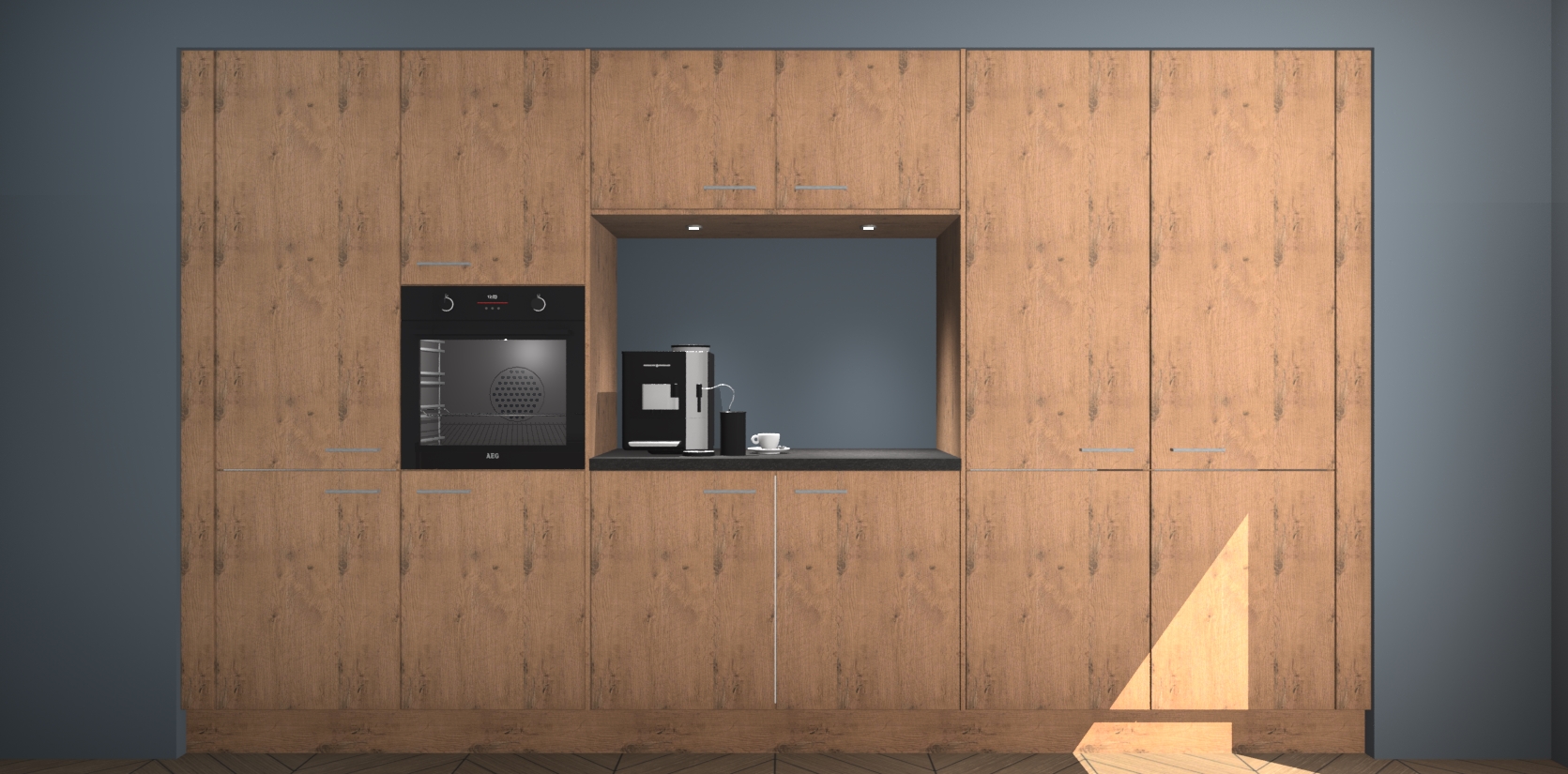 De Astoria Eiken keuken Lodz wordt geleverd met een set van 5 ingebouwde apparaten: Een oven, inductiekookplaat, afzuigkap, vaatwasser en koelkast. Deze kunnen gemakkelijk worden opgewaardeerd naar AEG. Met de gegarandeerde lage prijs en de snelle levering van 7 weken kan u er op rekenen dat de Astoria Eiken keuken Lodz zo snel mogelijk uw huis bereikt!