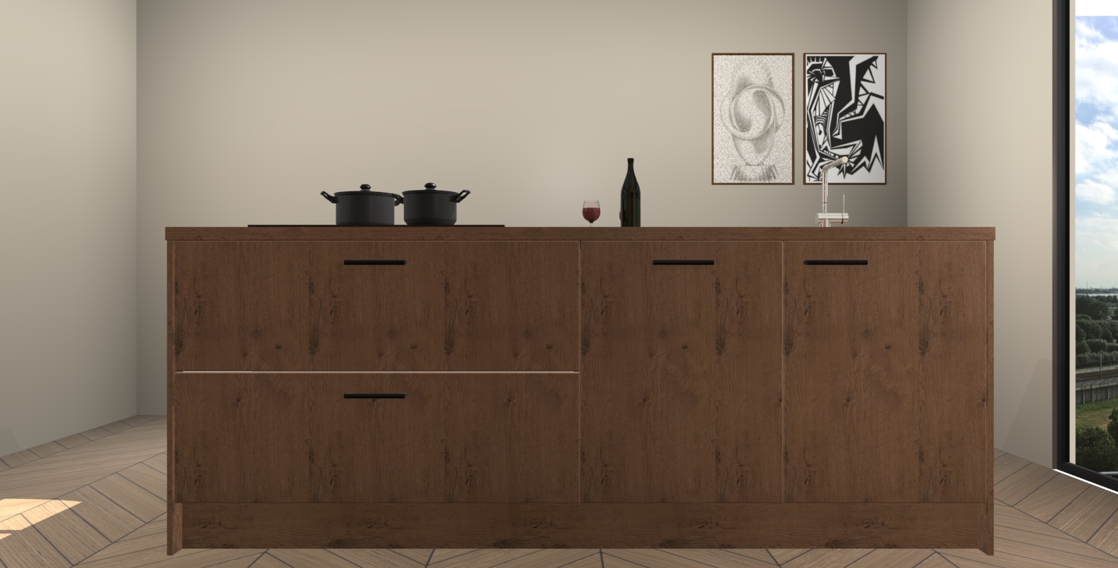 Inclusief plinten, stelpoten en werkblad