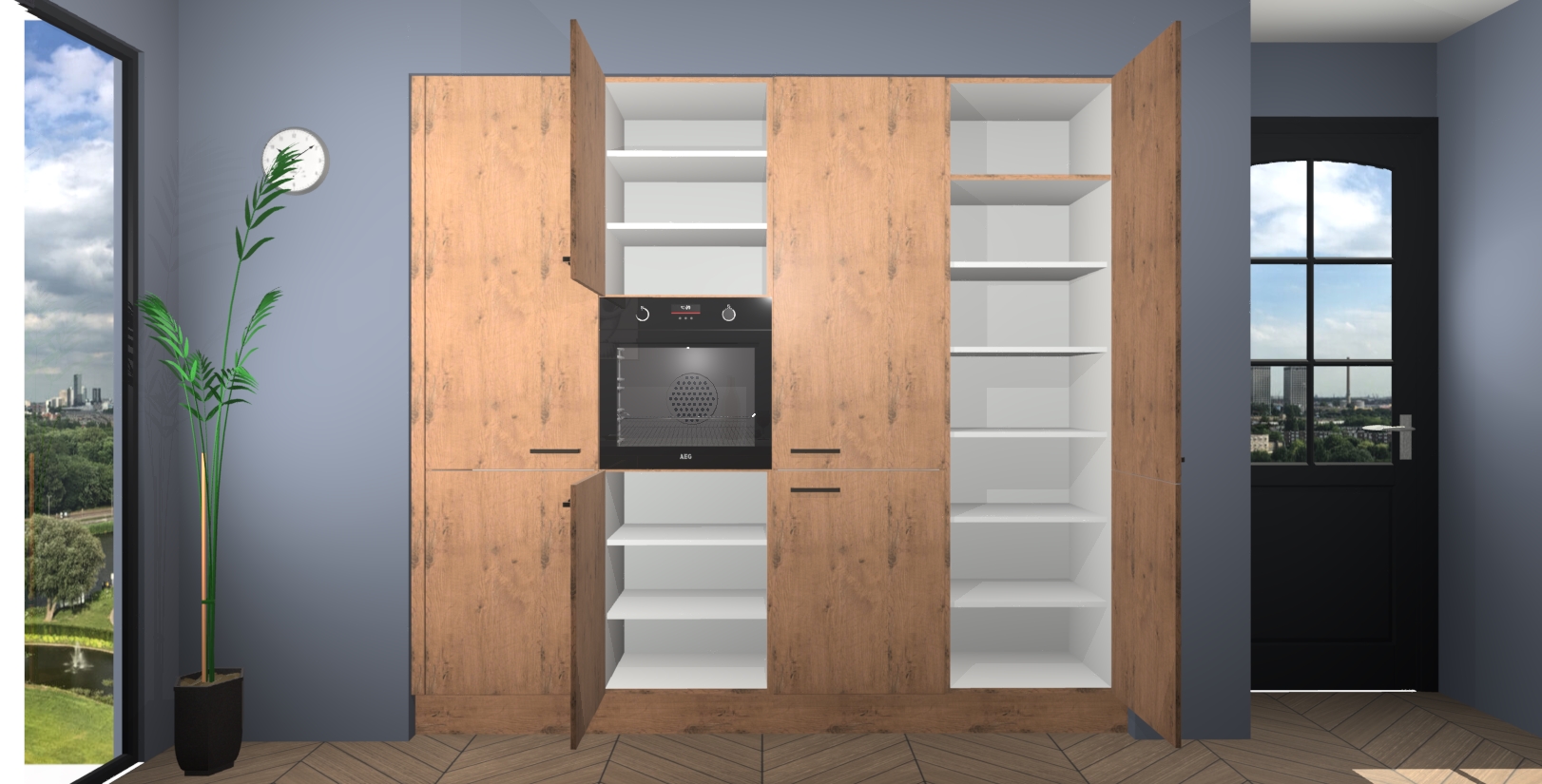 Dankzij de vele opbergruimte wordt praktisch elke centimeter van uw keuken optimaal benut, wat de ruimte een opgeruimde en sfeervolle uitstraling geeft. Bovendien zijn we er trots op dat we een snelle levering van 7 weken en een vaste lage prijs kunnen bieden, zodat u deze prachtige keuken in een mum van tijd in huis hebt!