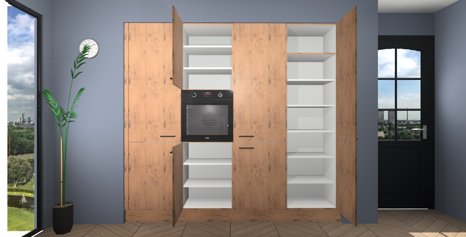 Dankzij de vele opbergruimte wordt praktisch elke centimeter van uw keuken optimaal benut, wat de ruimte een opgeruimde en sfeervolle uitstraling geeft. Bovendien zijn we er trots op dat we een snelle levering van 7 weken en een vaste lage prijs kunnen bieden, zodat u deze prachtige keuken in een mum van tijd in huis hebt!