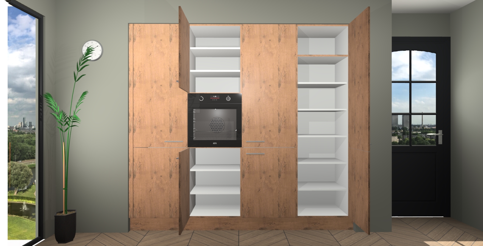 Dankzij de vele opbergruimte wordt praktisch elke centimeter van uw keuken optimaal benut, wat de ruimte een opgeruimde en sfeervolle uitstraling geeft. Bovendien zijn we er trots op dat we een snelle levering van 7 weken en een vaste lage prijs kunnen bieden, zodat u deze prachtige keuken in een mum van tijd in huis hebt!
