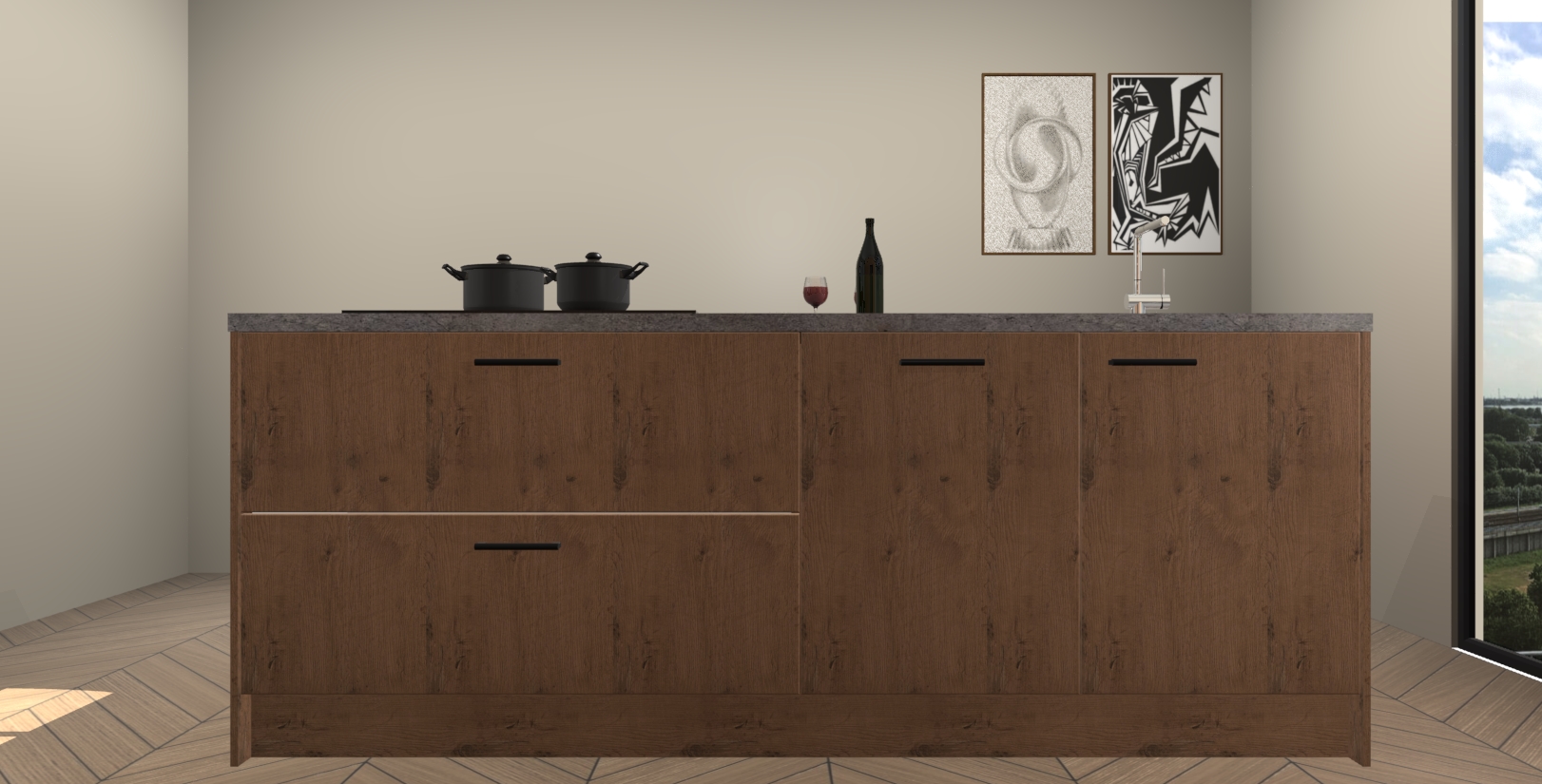 Dankzij de vele opbergruimte wordt praktisch elke centimeter van uw keuken optimaal benut, wat de ruimte een opgeruimde en sfeervolle uitstraling geeft. Bovendien zijn we er trots op dat we een snelle levering van 7 weken en een vaste lage prijs kunnen bieden, zodat u deze prachtige keuken in een mum van tijd in huis hebt!