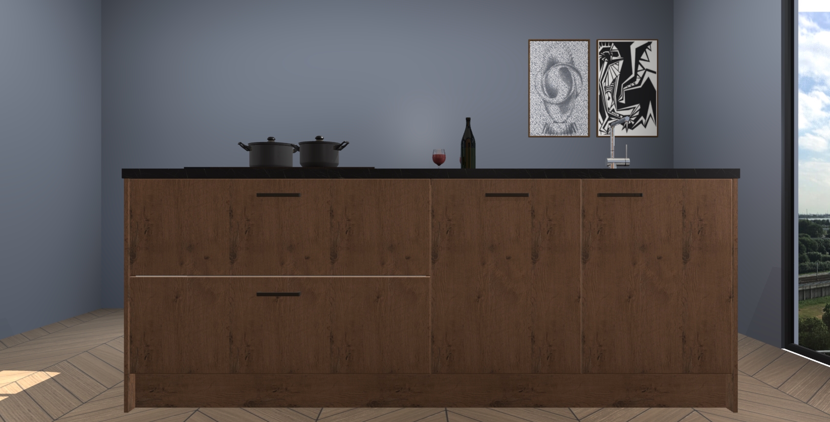 Inclusief plinten, stelpoten en werkblad