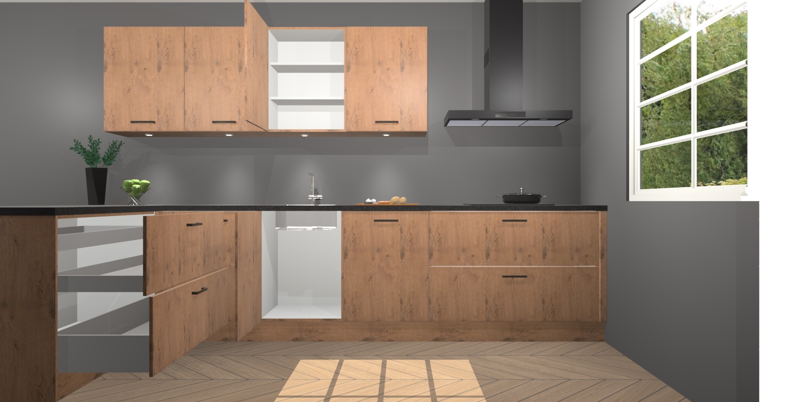 Inclusief plinten, stelpoten en werkblad