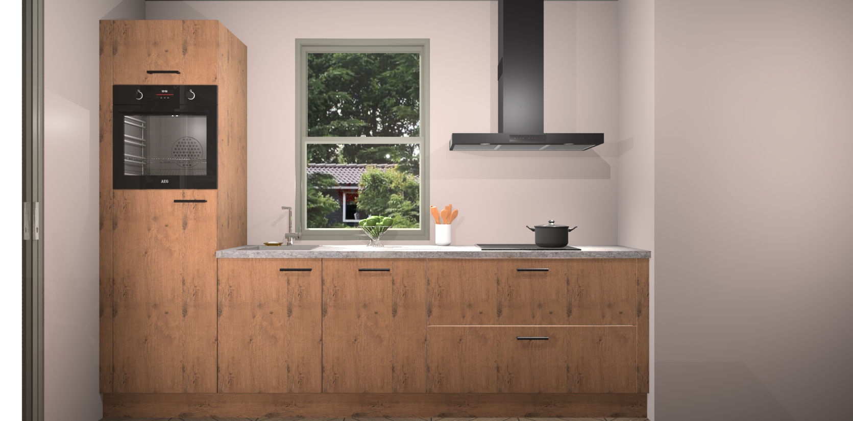 Een stijlvolle en praktische keuken als deze mag gezien worden. Dankzij de prachtige Astoria Eiken afwerking wordt de keuken gemakkelijk het middelpunt van uw huis - hij ziet er geweldig uit onder allerlei lichtomstandigheden, van dag tot nacht!