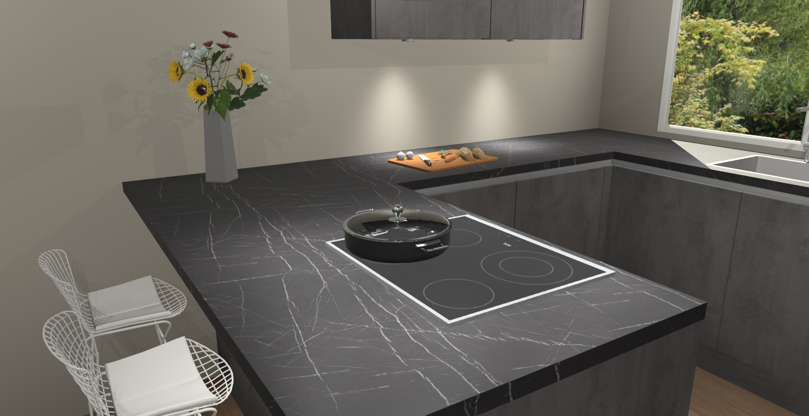 • Bij een hoekwerkblad zijn de hoeken in gevreesd en op maat gemaakt