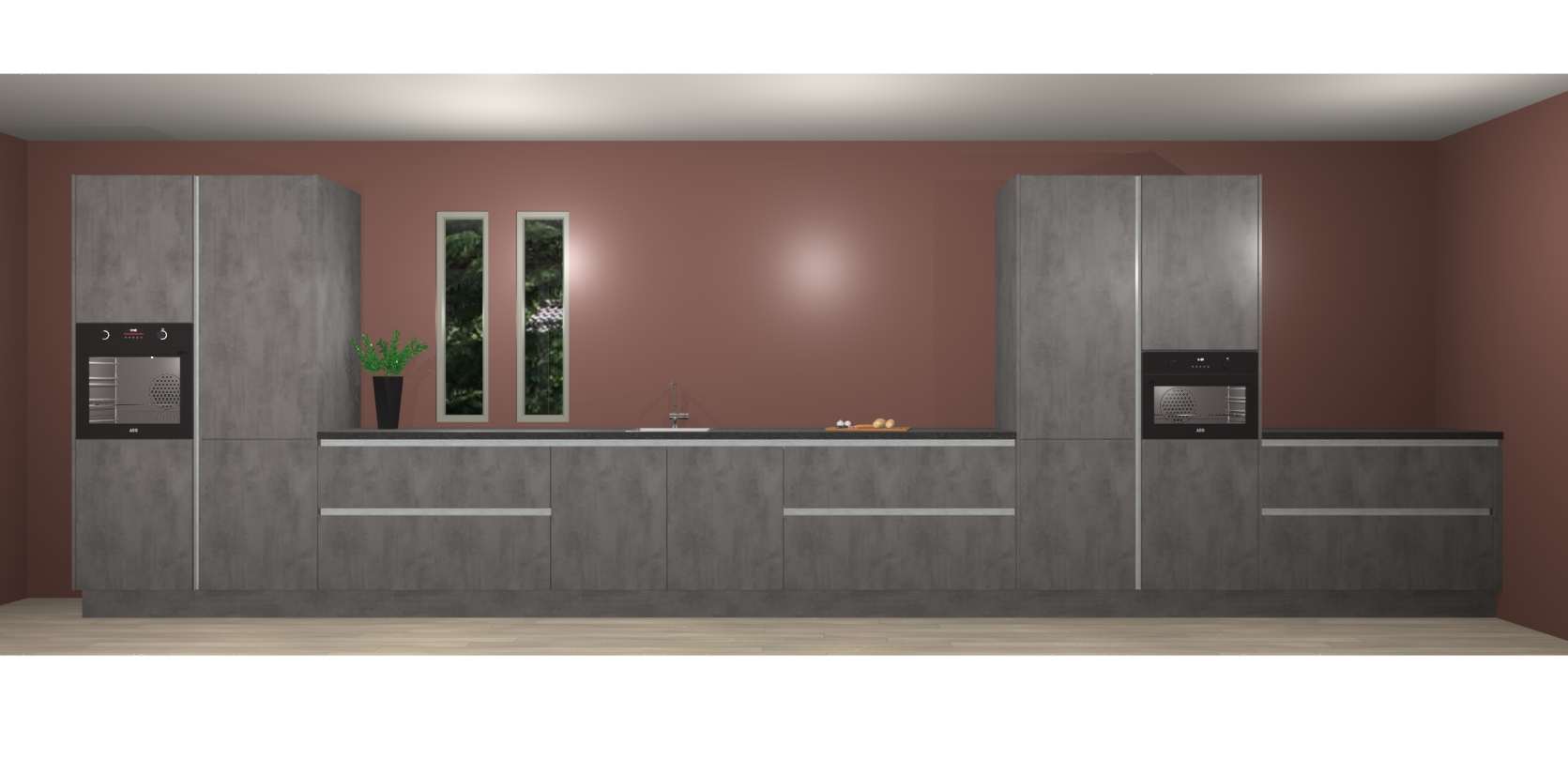 De perfecte toevoeging aan uw droomkeuken! De beton antraciet greeploze keuken Krakor is een opmerkelijke en verfijnde keuken. Hij is ontworpen met moderne lijnen en tijdloze schoonheid die garant staan voor een luxe uitstraling. Deze uiterst functionele en mooie keuken heeft een reeks verbazingwekkende functies: de overvloedige opbergruimte bevat soft close deuren, terwijl vijf inbouwapparaten zijn inbegrepen in de vaste lage prijs. Beter nog, uw beton antraciet greeploze keuken Krakor bestellen duurt slechts 7 weken met levering van voorgemonteerde kasten.