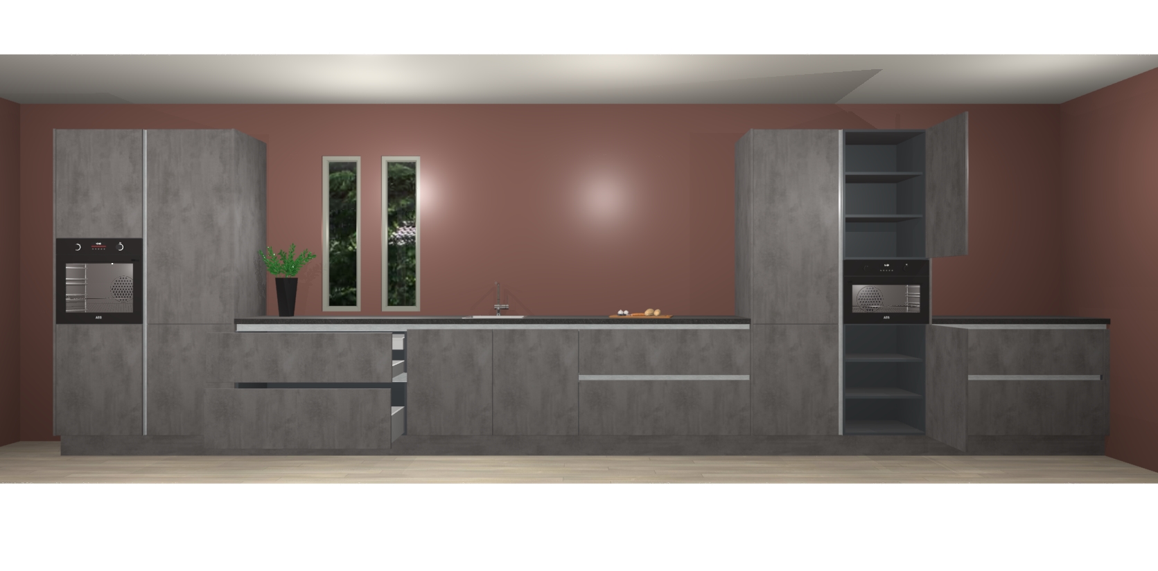 U kunt gerust zijn in de wetenschap dat u geen jaren hoeft te wachten om de keuken van uw dromen te krijgen; met De beton antraciet greeploze keuken Krakor krijgt u maximale luxe voor minimale inspanningen. U hoeft alleen maar te kiezen voor deze verbluffend mooie beton antraciet greeploze keuken Krakor!