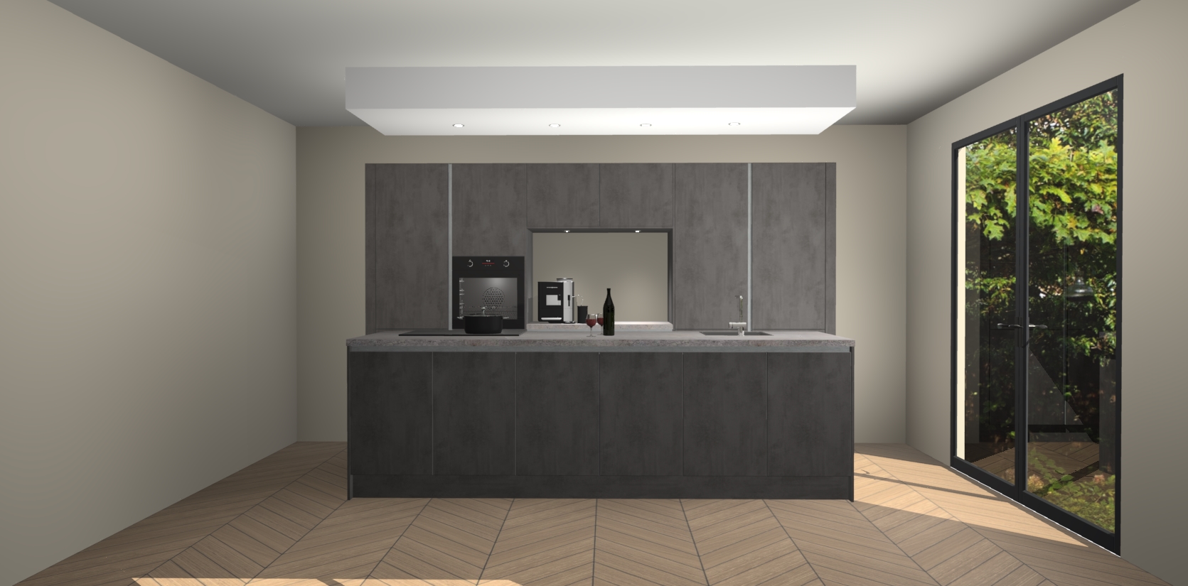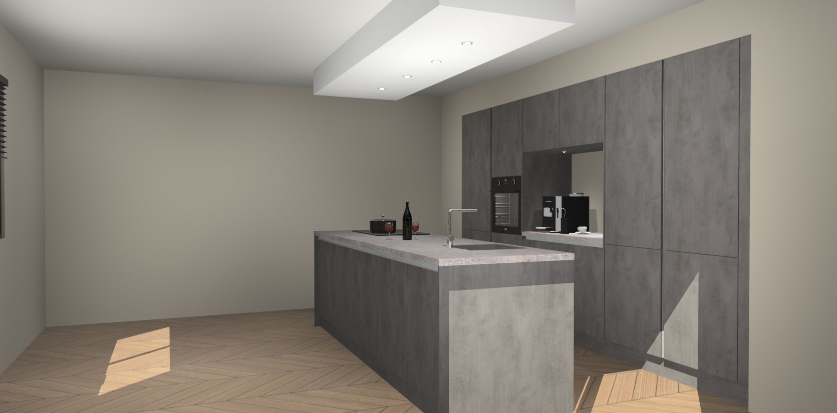 Sfeervol luxe met de Beton Antraciet greeploze keuken Lodz! Reken op een moderne look die met zijn schitterende Beton Antraciet kleur en het prachtige keukeneiland echt zal schitteren in uw keuken. Met veel verschillende berging opties zult u alles kunnen opbergen wat u nodig heeft in deze hoopvolle ruimte, waaronder ook soft-close vergrendeling.