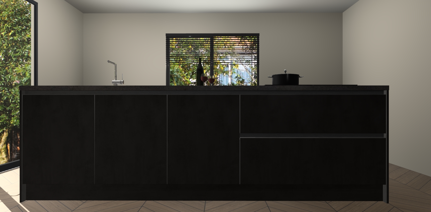 Inclusief plinten, stelpoten en werkblad