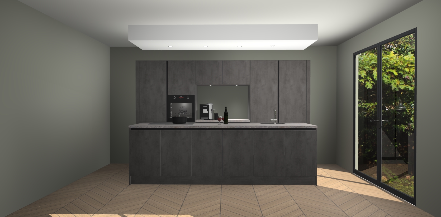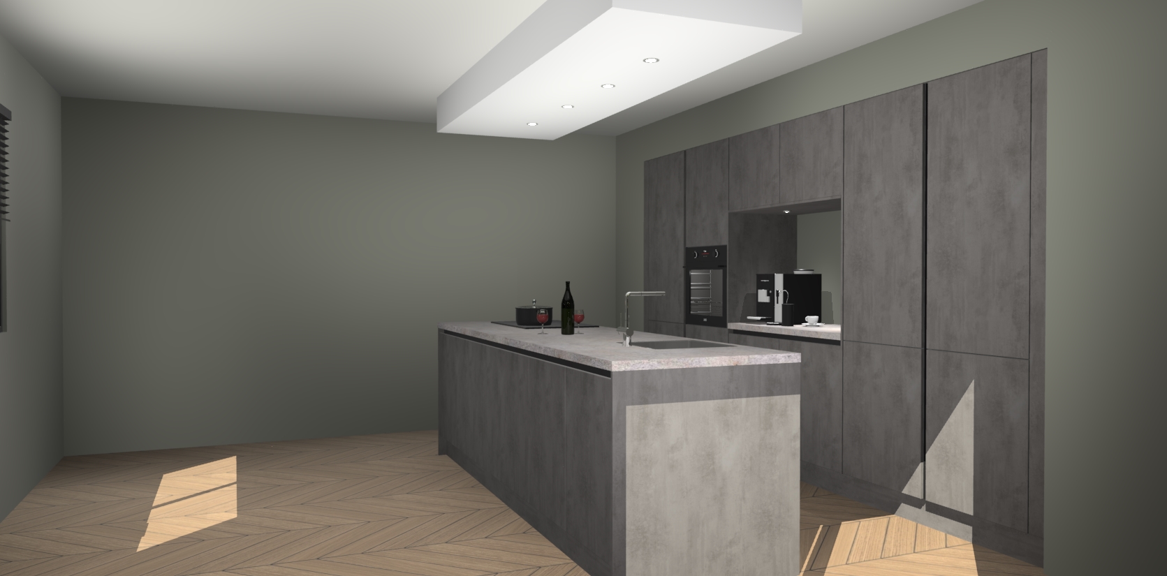Sfeervol luxe met de Beton Antraciet greeploze keuken Lodz! Reken op een moderne look die met zijn schitterende Beton Antraciet kleur en het prachtige keukeneiland echt zal schitteren in uw keuken. Met veel verschillende berging opties zult u alles kunnen opbergen wat u nodig heeft in deze hoopvolle ruimte, waaronder ook soft-close vergrendeling.