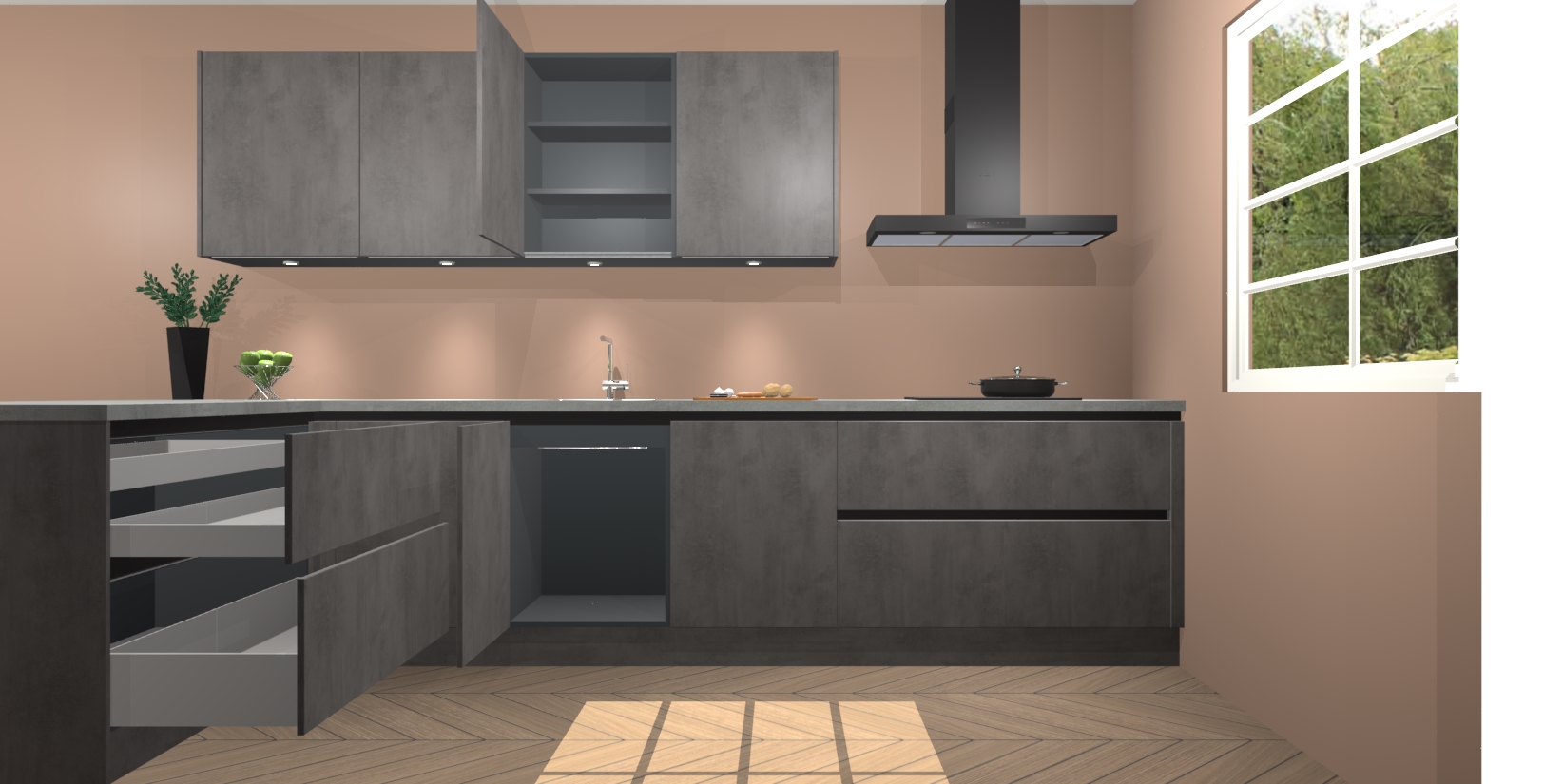 Inclusief plinten, stelpoten en werkblad