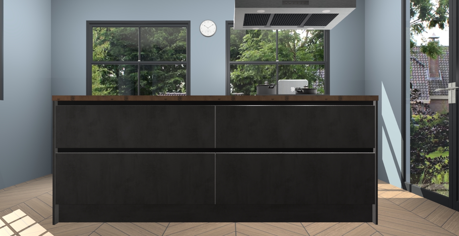 Maak kennis met de nieuwe Beton Antraciet Greeploze keuken Straatsburg, dat gemaakt is voor de moderne huiseigenaar. Deze chique en eigentijdse keuken geeft uw huis een instant upgrade. Het Beton Antraciet Greeploze  ontwerp creëert de perfecte balans tussen elegantie en functionaliteit en geeft uw ruimte een strakke, uitnodigende sfeer. Het spoeleiland geeft ruime opbergruimte en met de soft-close deuren is deze keuken  perfect voor elk huis.