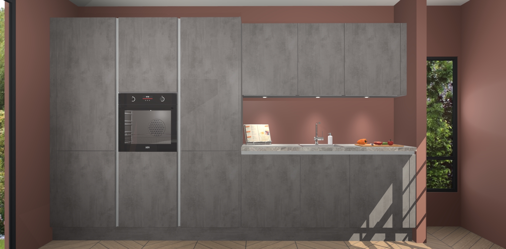 Maak kennis met de nieuwe Beton Antraciet Greeploze keuken Straatsburg, dat gemaakt is voor de moderne huiseigenaar. Deze chique en eigentijdse keuken geeft uw huis een instant upgrade. Het Beton Antraciet Greeploze ontwerp creëert de perfecte balans tussen elegantie en functionaliteit en geeft uw ruimte een strakke, uitnodigende sfeer. Het spoeleiland geeft ruime opbergruimte en met de soft-close deuren is deze keuken perfect voor elk huis.