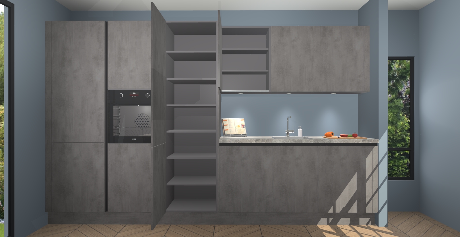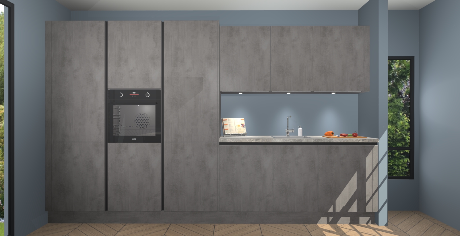 Maak kennis met de nieuwe Beton Antraciet Greeploze keuken Straatsburg, dat gemaakt is voor de moderne huiseigenaar. Deze chique en eigentijdse keuken geeft uw huis een instant upgrade. Het Beton Antraciet Greeploze  ontwerp creëert de perfecte balans tussen elegantie en functionaliteit en geeft uw ruimte een strakke, uitnodigende sfeer. Het spoeleiland geeft ruime opbergruimte en met de soft-close deuren is deze keuken  perfect voor elk huis.