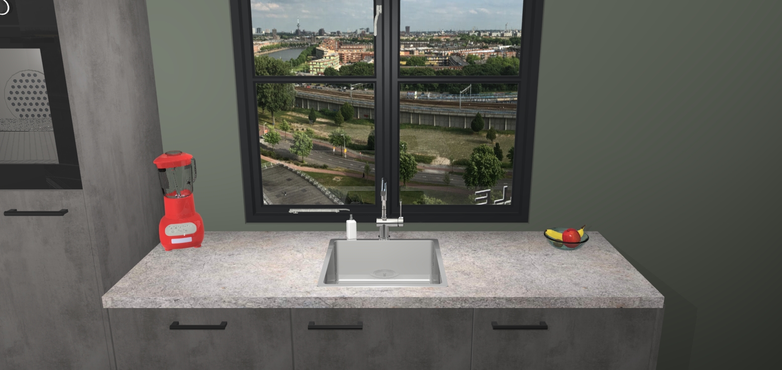 - De spoelbak is nog niet in gevreesd. Dit dient tijdens het werk gedaan te worden