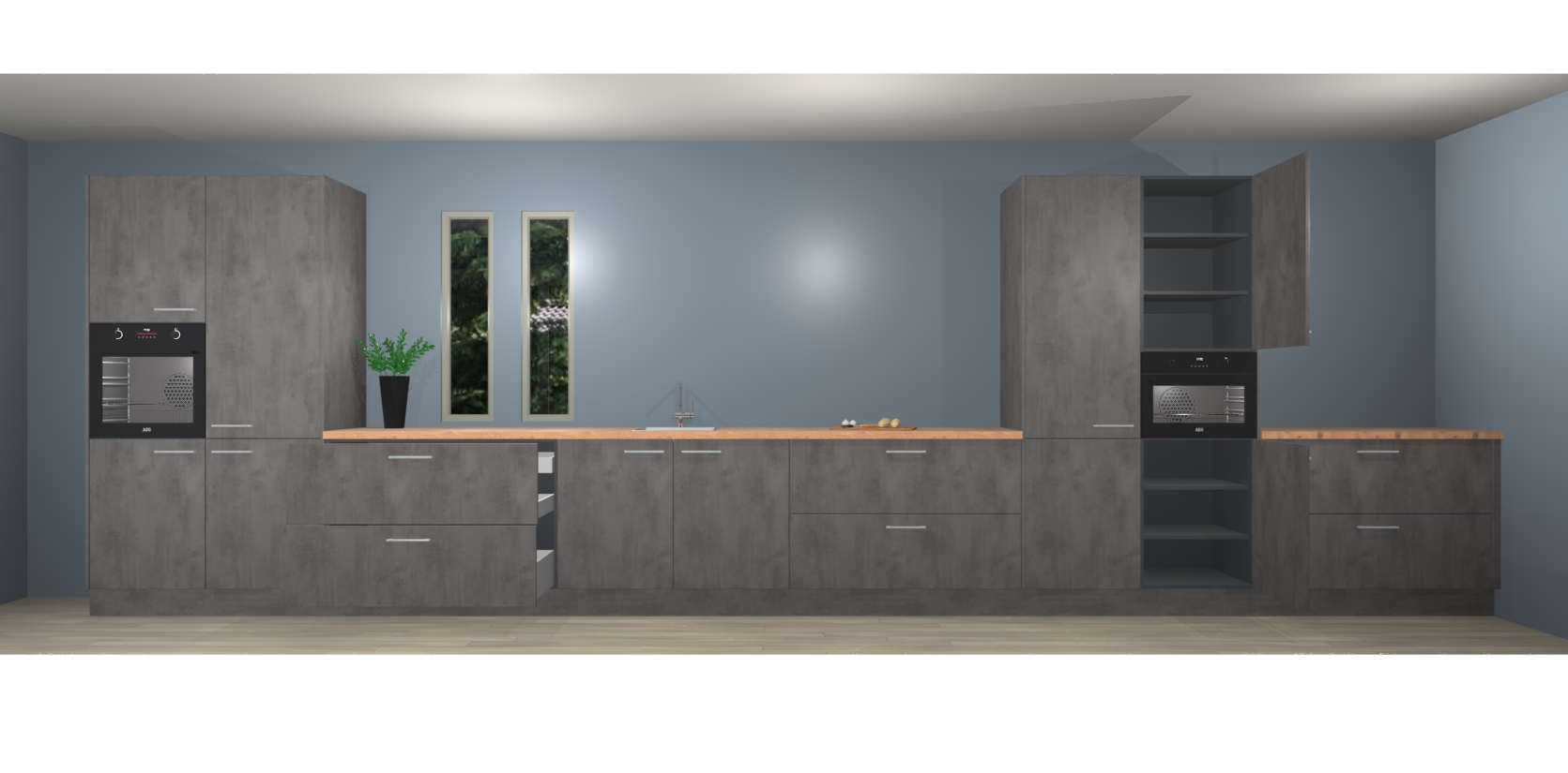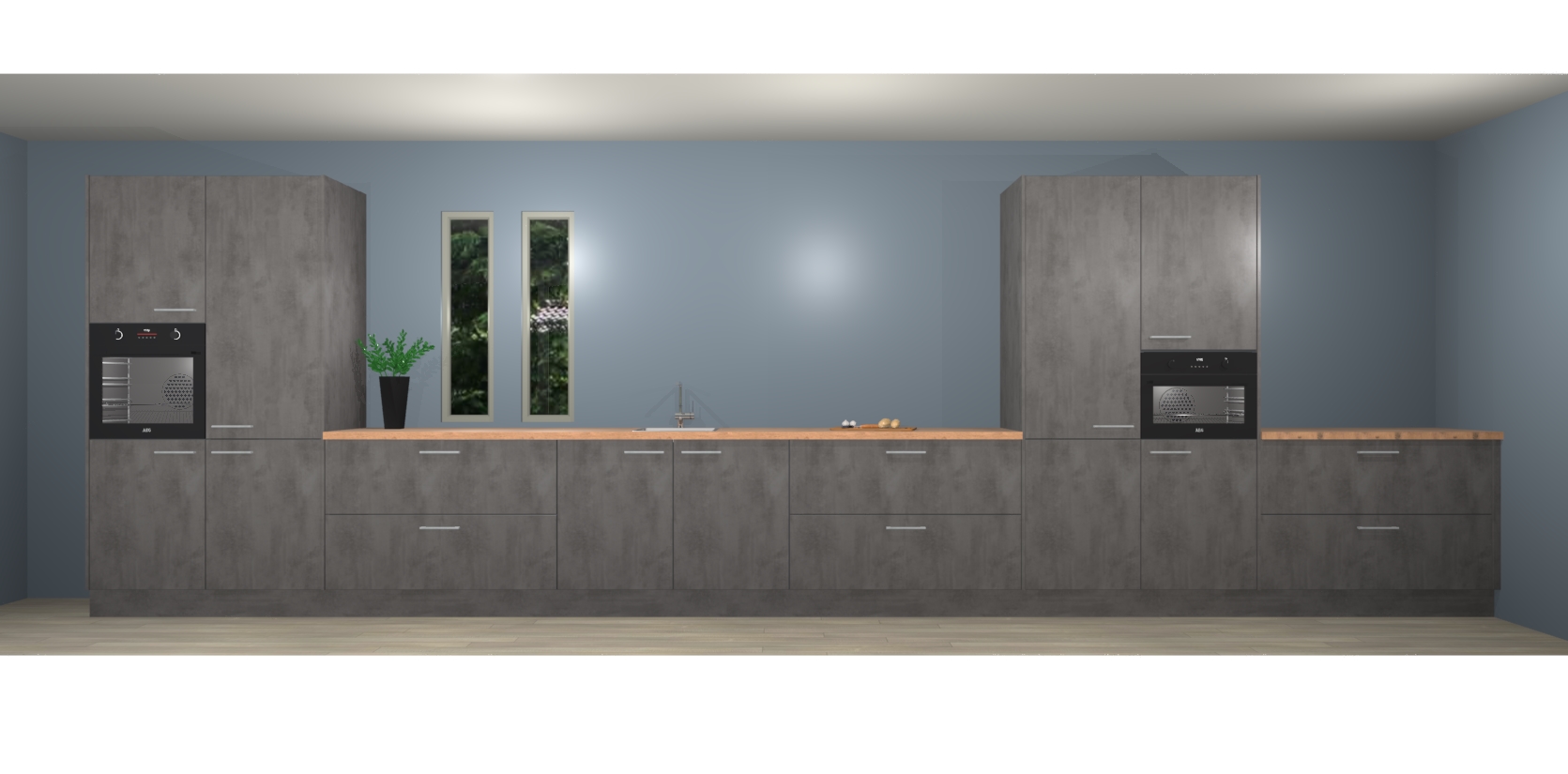 De perfecte toevoeging aan uw droomkeuken! De beton antraciet keuken Krakor is een opmerkelijke en verfijnde keuken. Hij is ontworpen met moderne lijnen en tijdloze schoonheid die garant staan voor een luxe uitstraling. Deze uiterst functionele en mooie keuken heeft een reeks verbazingwekkende functies: de overvloedige opbergruimte bevat soft close deuren, terwijl vijf inbouwapparaten zijn inbegrepen in de vaste lage prijs. Beter nog, uw beton antraciet keuken Krakor bestellen duurt slechts 7 weken met levering van voorgemonteerde kasten.