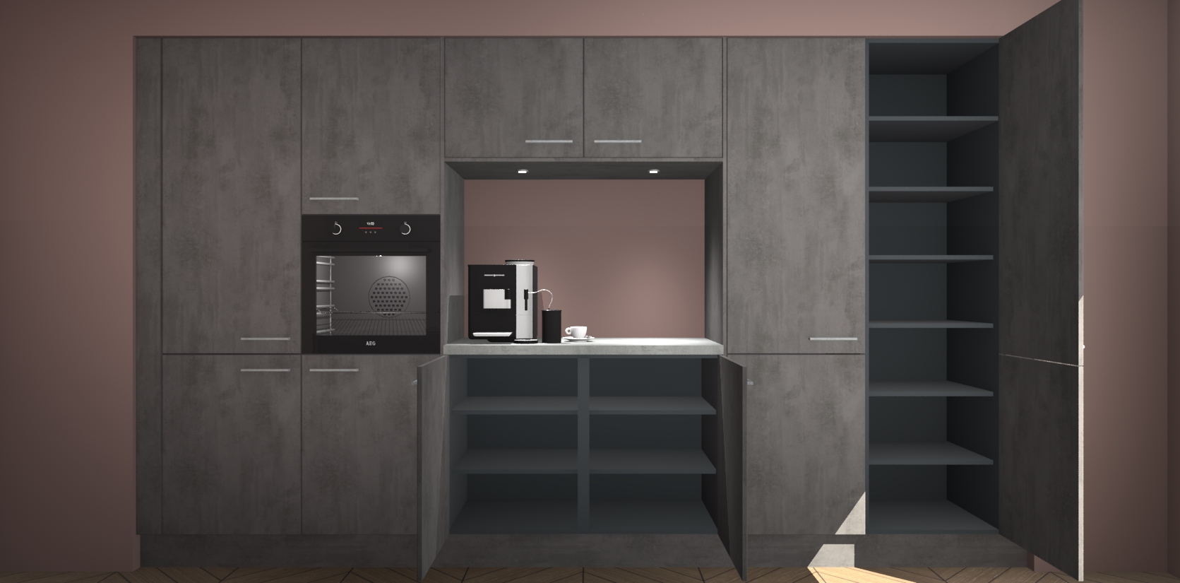 De Beton Antraciet keuken Lodz wordt geleverd met een set van 5 ingebouwde apparaten: Een oven, inductiekookplaat, afzuigkap, vaatwasser en koelkast. Deze kunnen gemakkelijk worden opgewaardeerd naar AEG. Met de gegarandeerde lage prijs en de snelle levering van 7 weken kan u er op rekenen dat de Beton Antraciet keuken Lodz zo snel mogelijk uw huis bereikt!