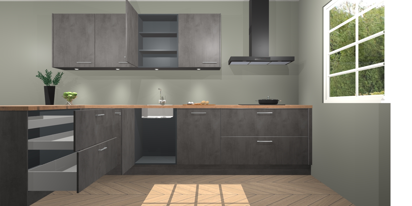 U kunt gerust zijn in de wetenschap dat u geen jaren hoeft te wachten om de keuken van uw dromen te krijgen; met de beton antraciet keuken Sopot krijgt u maximale luxe voor minimale inspanningen. U hoeft alleen maar te kiezen voor deze verbluffend mooie beton antraciet keuken!