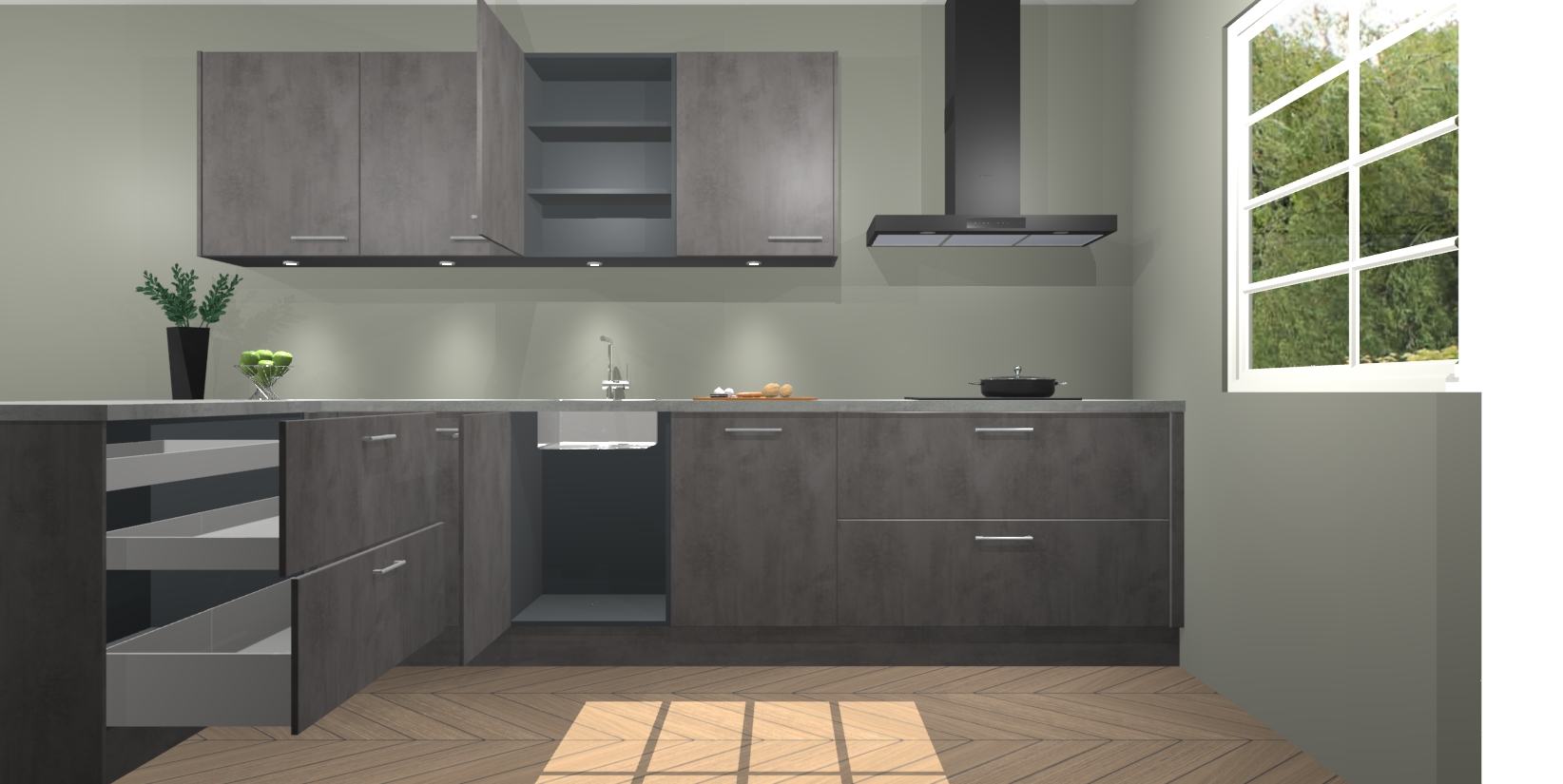U kunt gerust zijn in de wetenschap dat u geen jaren hoeft te wachten om de keuken van uw dromen te krijgen; met de beton antraciet keuken Sopot krijgt u maximale luxe voor minimale inspanningen. U hoeft alleen maar te kiezen voor deze verbluffend mooie beton antraciet keuken!