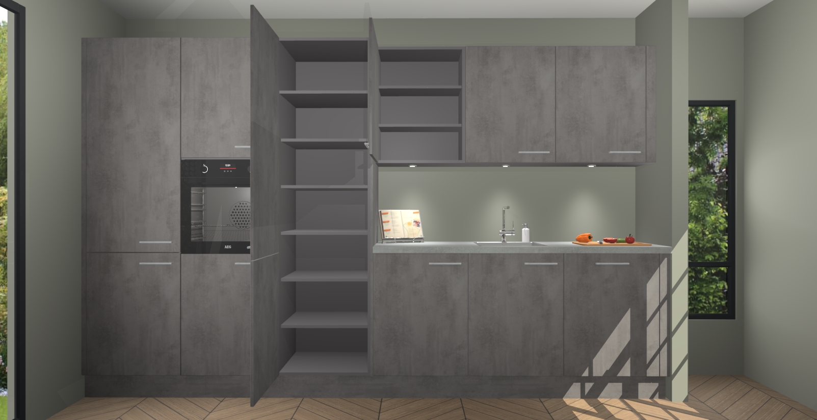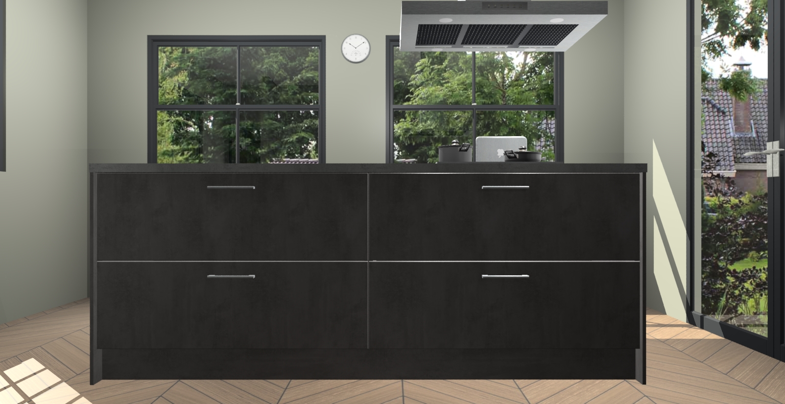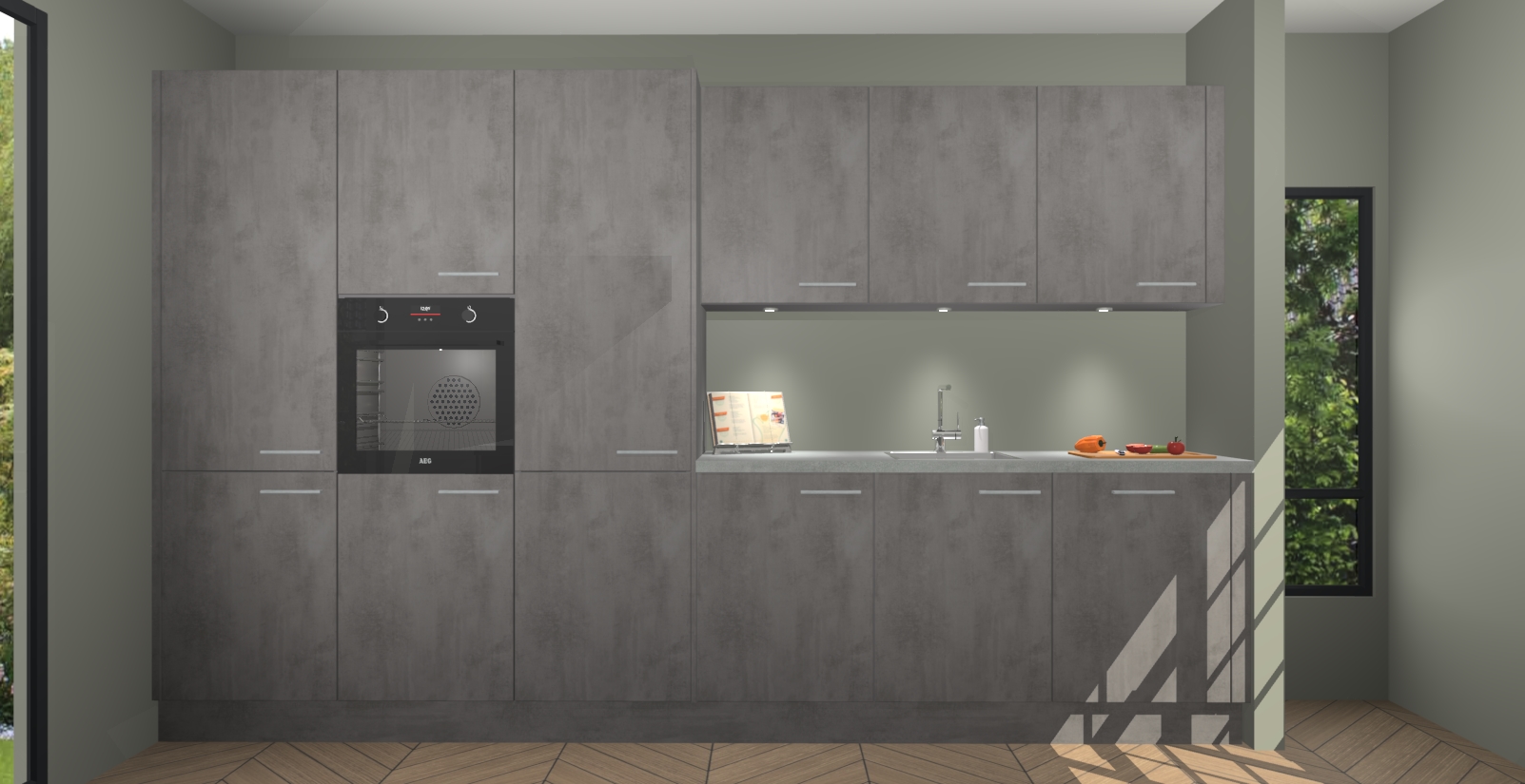 Maak kennis met de nieuwe Beton Antraciet keuken Straatsburg, dat gemaakt is voor de moderne huiseigenaar. Deze chique en eigentijdse keuken geeft uw huis een instant upgrade. Het Beton Antraciet ontwerp creëert de perfecte balans tussen elegantie en functionaliteit en geeft uw ruimte een strakke, uitnodigende sfeer. Het spoeleiland geeft ruime opbergruimte en met de soft-close deuren is deze keuken  perfect voor elk huis.