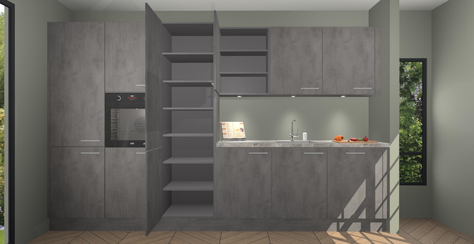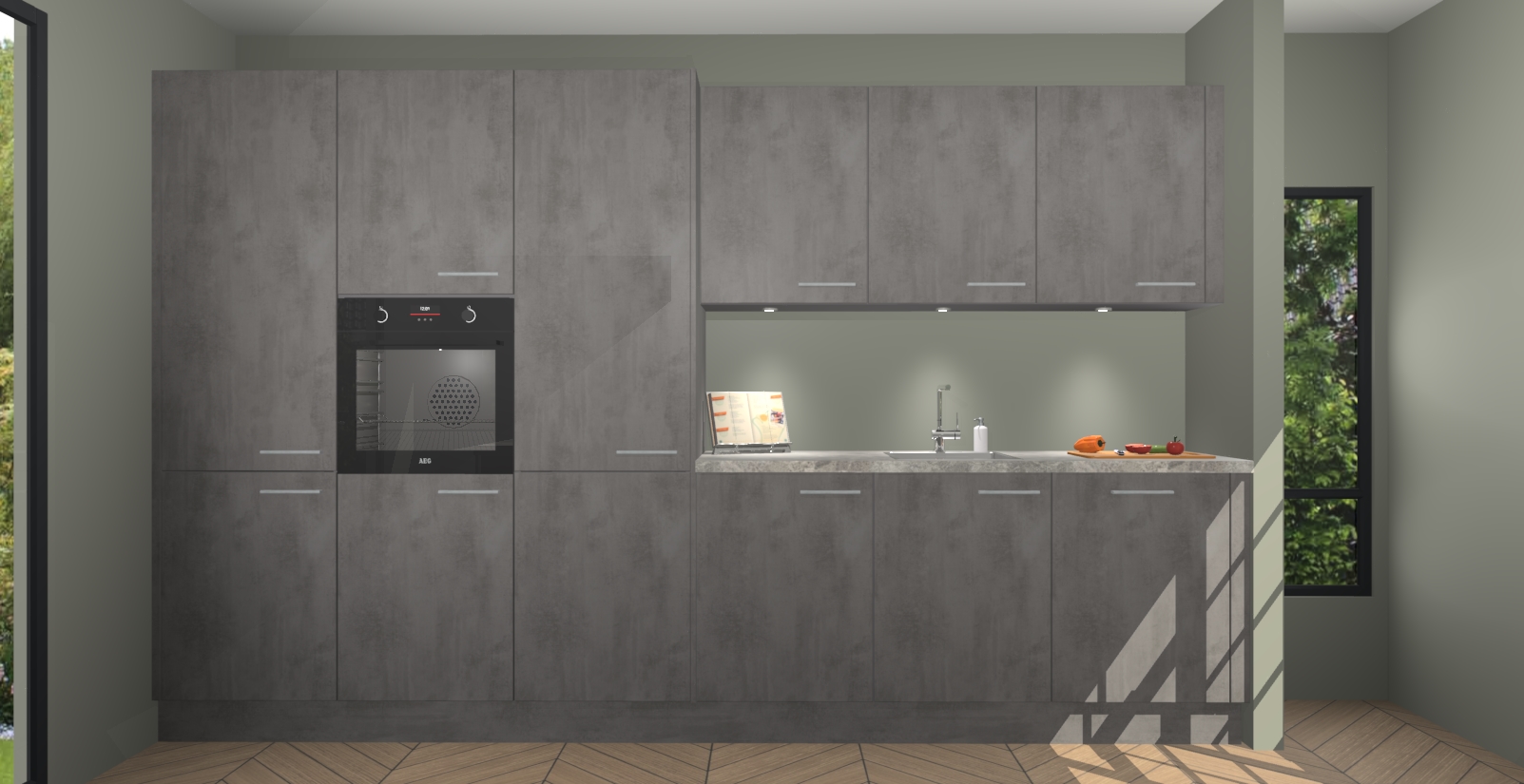 Maak kennis met de nieuwe Beton Antraciet keuken Straatsburg, dat gemaakt is voor de moderne huiseigenaar. Deze chique en eigentijdse keuken geeft uw huis een instant upgrade. Het Beton Antraciet ontwerp creëert de perfecte balans tussen elegantie en functionaliteit en geeft uw ruimte een strakke, uitnodigende sfeer. Het spoeleiland geeft ruime opbergruimte en met de soft-close deuren is deze keuken perfect voor elk huis.