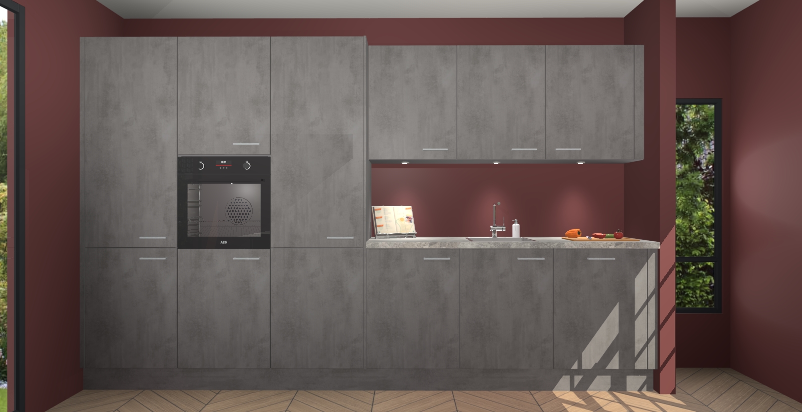 Maak kennis met de nieuwe Beton Antraciet keuken Straatsburg, dat gemaakt is voor de moderne huiseigenaar. Deze chique en eigentijdse keuken geeft uw huis een instant upgrade. Het Beton Antraciet ontwerp creëert de perfecte balans tussen elegantie en functionaliteit en geeft uw ruimte een strakke, uitnodigende sfeer. Het spoeleiland geeft ruime opbergruimte en met de soft-close deuren is deze keuken perfect voor elk huis.