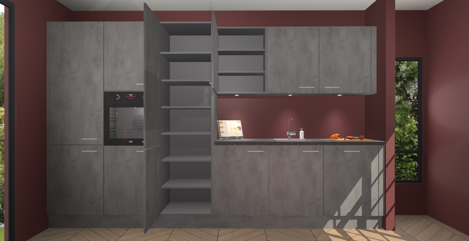 Maak kennis met de nieuwe Beton Antraciet keuken Straatsburg, dat gemaakt is voor de moderne huiseigenaar. Deze chique en eigentijdse keuken geeft uw huis een instant upgrade. Het Beton Antraciet ontwerp creëert de perfecte balans tussen elegantie en functionaliteit en geeft uw ruimte een strakke, uitnodigende sfeer. Het spoeleiland geeft ruime opbergruimte en met de soft-close deuren is deze keuken perfect voor elk huis.