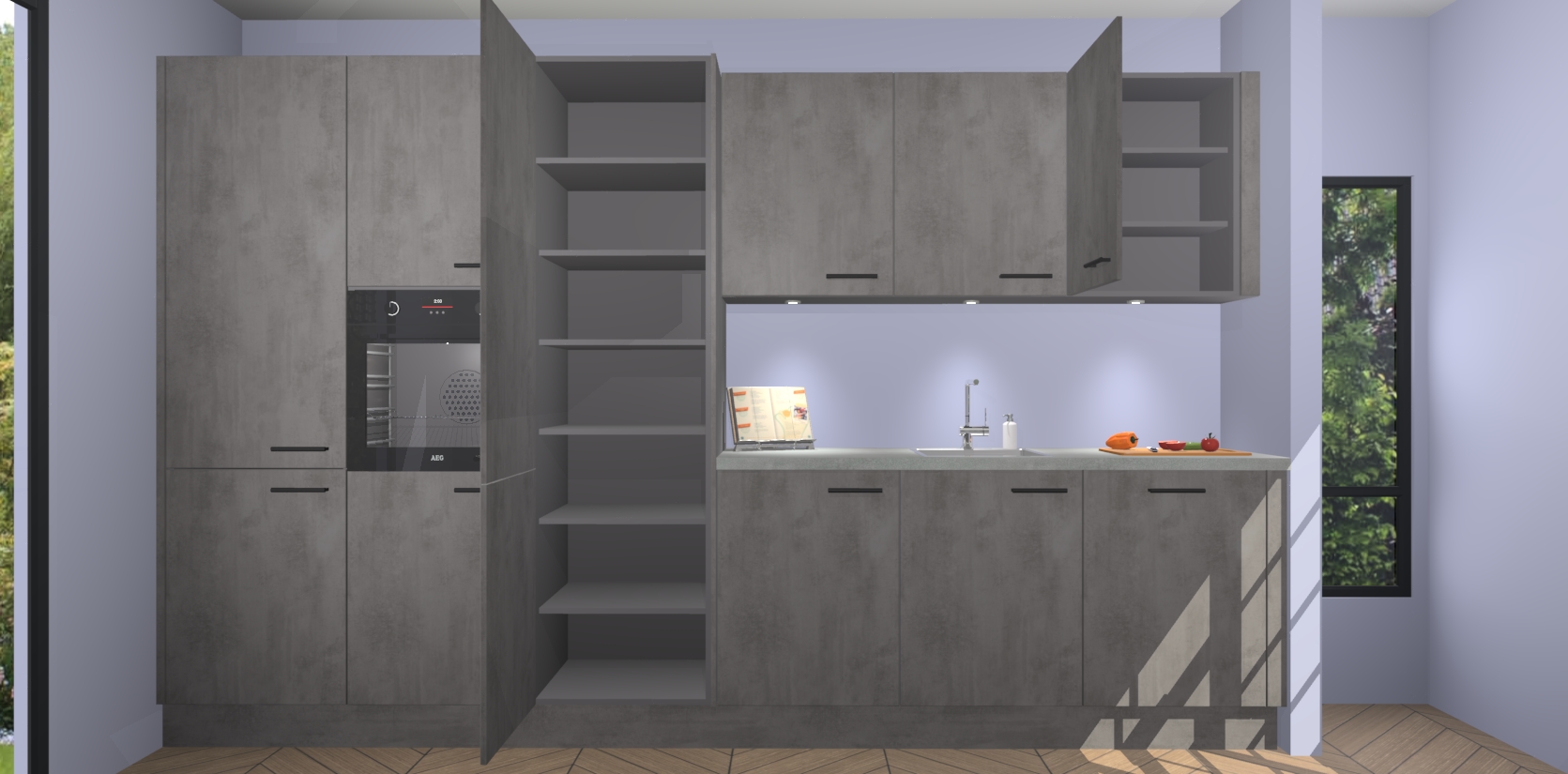Maak kennis met de nieuwe Beton Antraciet keuken Straatsburg, dat gemaakt is voor de moderne huiseigenaar. Deze chique en eigentijdse keuken geeft uw huis een instant upgrade. Het Beton Antraciet ontwerp creëert de perfecte balans tussen elegantie en functionaliteit en geeft uw ruimte een strakke, uitnodigende sfeer. Het spoeleiland geeft ruime opbergruimte en met de soft-close deuren is deze keuken perfect voor elk huis.