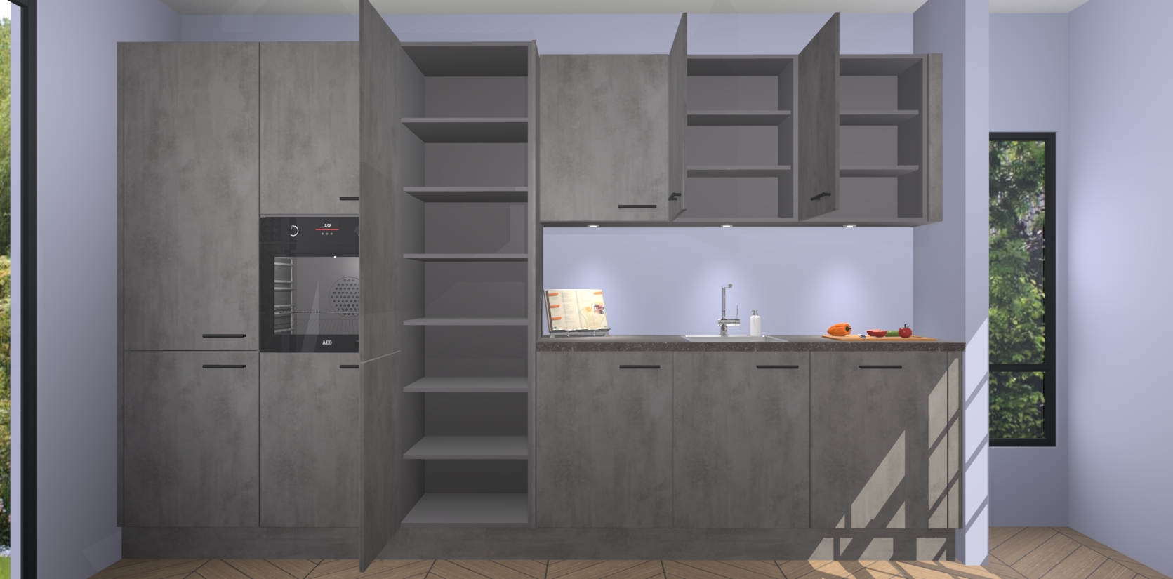 Maak kennis met de nieuwe Beton Antraciet keuken Straatsburg, dat gemaakt is voor de moderne huiseigenaar. Deze chique en eigentijdse keuken geeft uw huis een instant upgrade. Het Beton Antraciet ontwerp creëert de perfecte balans tussen elegantie en functionaliteit en geeft uw ruimte een strakke, uitnodigende sfeer. Het spoeleiland geeft ruime opbergruimte en met de soft-close deuren is deze keuken perfect voor elk huis.