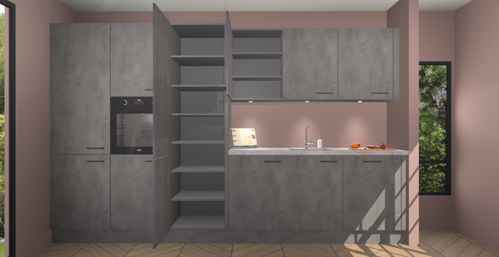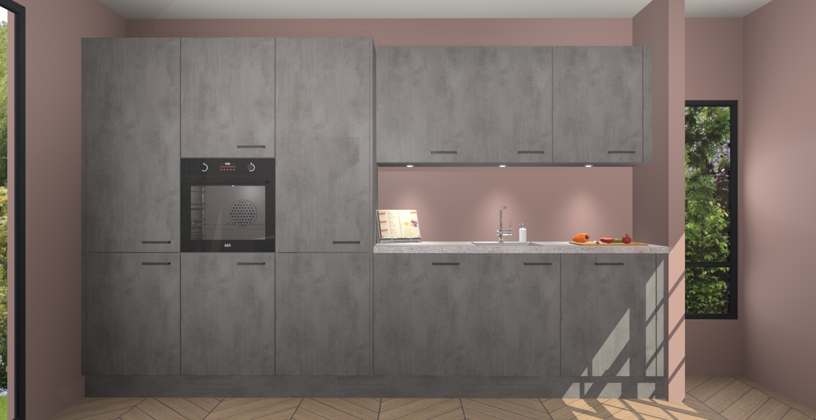 Maak kennis met de nieuwe Beton Antraciet keuken Straatsburg, dat gemaakt is voor de moderne huiseigenaar. Deze chique en eigentijdse keuken geeft uw huis een instant upgrade. Het Beton Antraciet ontwerp creëert de perfecte balans tussen elegantie en functionaliteit en geeft uw ruimte een strakke, uitnodigende sfeer. Het spoeleiland geeft ruime opbergruimte en met de soft-close deuren is deze keuken perfect voor elk huis.