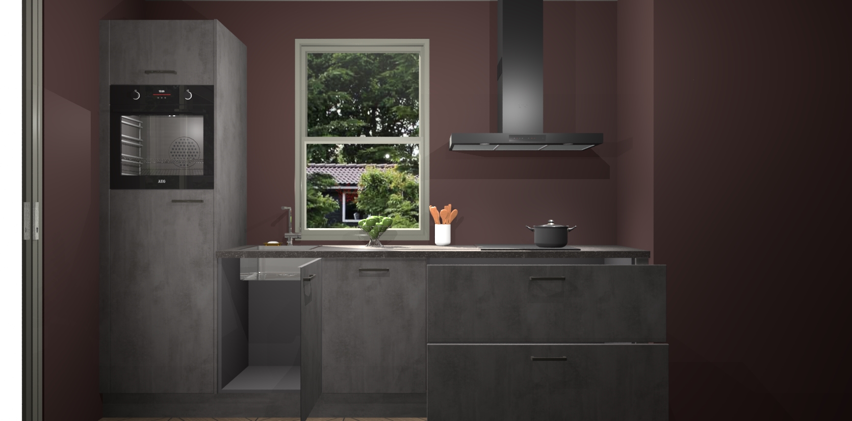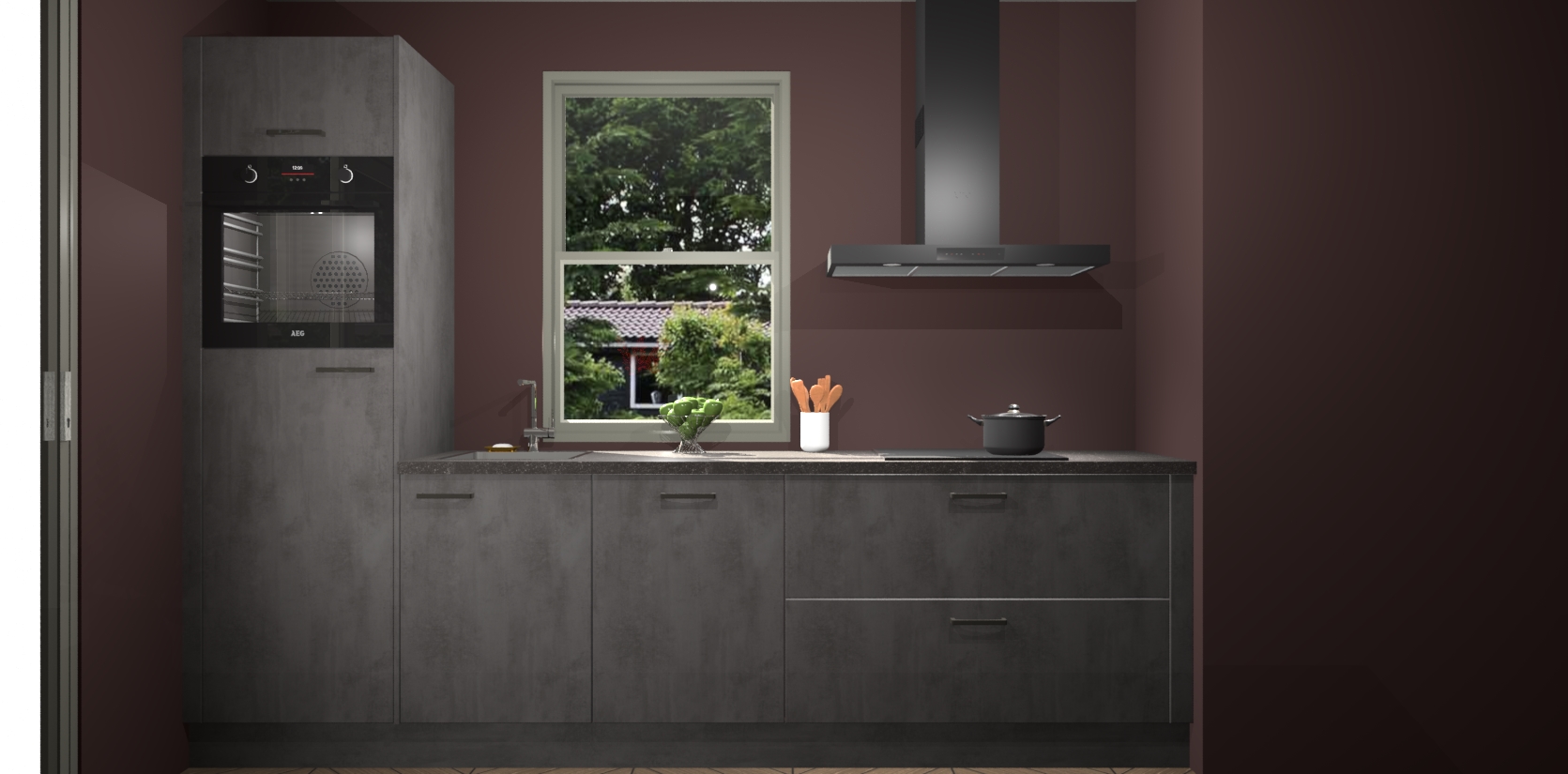 Een stijlvolle en praktische keuken als deze mag gezien worden. Dankzij de prachtige Beton Antraciet afwerking wordt de keuken gemakkelijk het middelpunt van uw huis - hij ziet er geweldig uit onder allerlei lichtomstandigheden, van dag tot nacht!