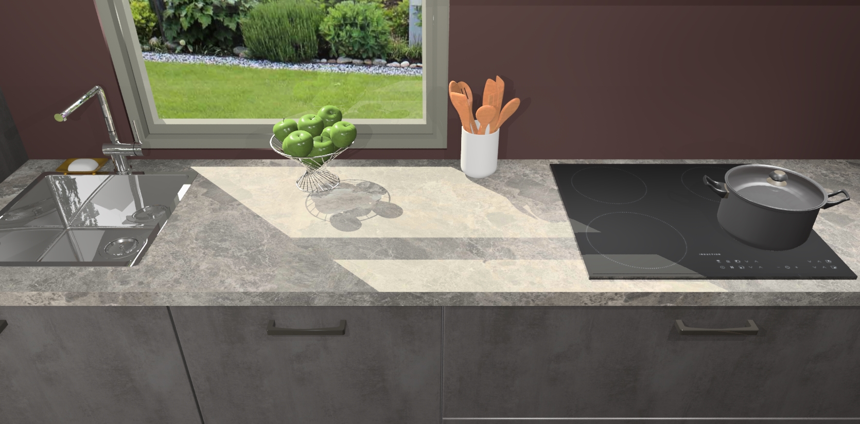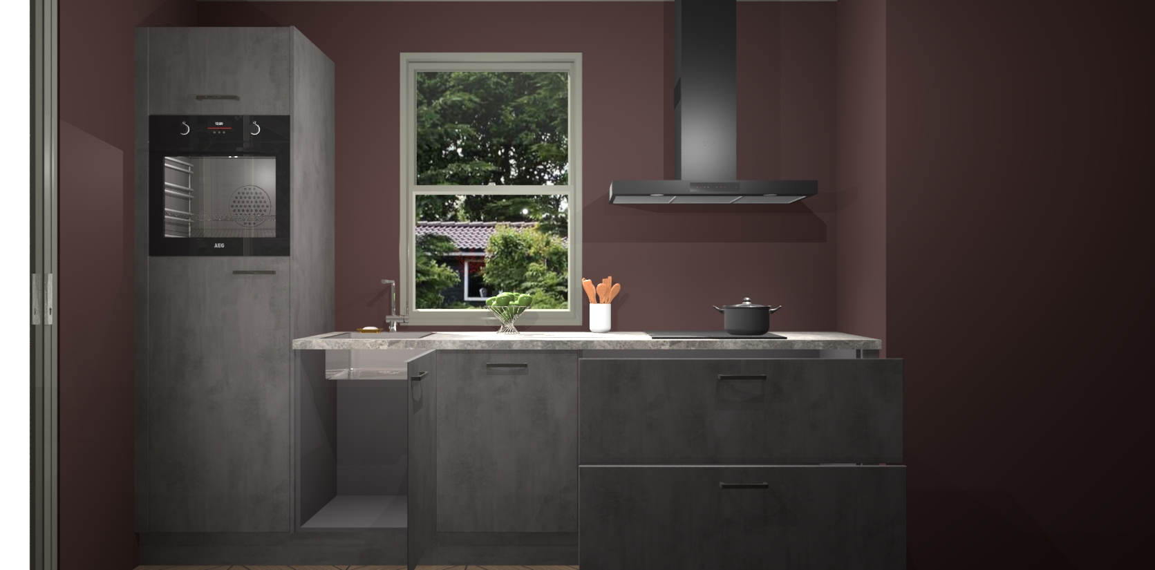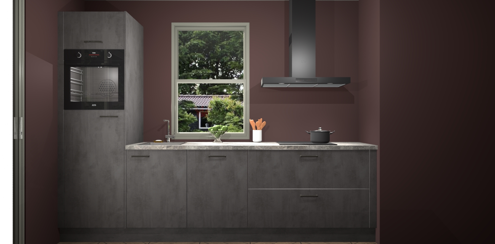 Een stijlvolle en praktische keuken als deze mag gezien worden. Dankzij de prachtige Beton Antraciet afwerking wordt de keuken gemakkelijk het middelpunt van uw huis - hij ziet er geweldig uit onder allerlei lichtomstandigheden, van dag tot nacht!
