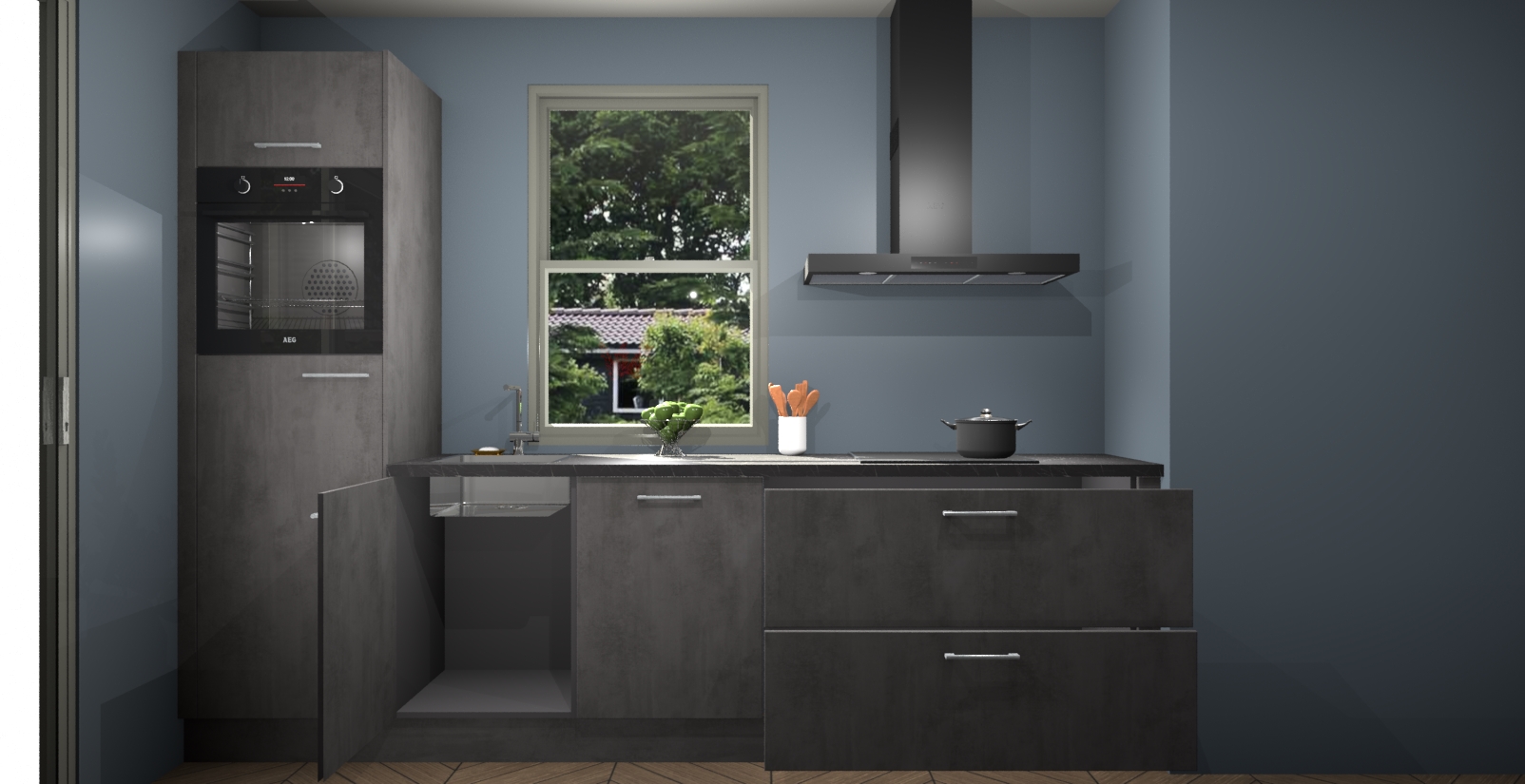 Dankzij de afwerking past de Beton Antraciet keuken Toulouse naadloos in elk huis of appartement. De soft-close deuren geven je extra gemoedsrust, want ze sluiten vanzelf en slaan nooit dicht! En alsof dat nog niet genoeg is, worden deze kasten volledig gemonteerd geleverd, dus maak je geen zorgen over eventuele installatieproblemen.