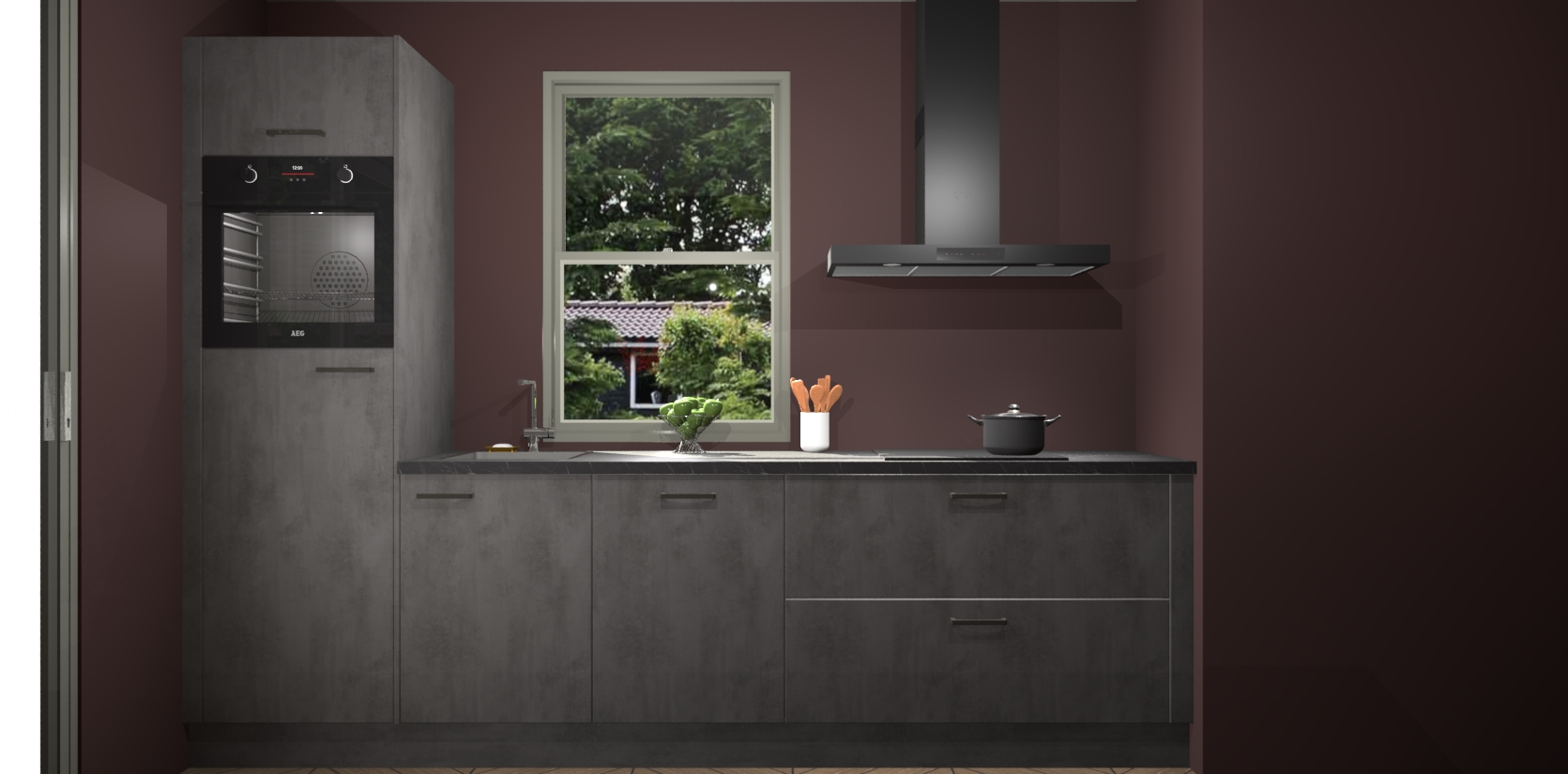 Een stijlvolle en praktische keuken als deze mag gezien worden. Dankzij de prachtige Beton Antraciet afwerking wordt de keuken gemakkelijk het middelpunt van uw huis - hij ziet er geweldig uit onder allerlei lichtomstandigheden, van dag tot nacht!