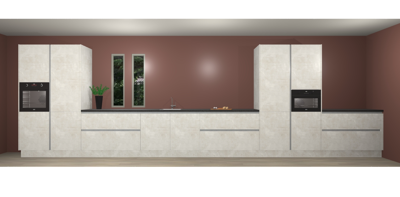 De perfecte toevoeging aan uw droomkeuken! De beton opaal greeploze keuken Krakor is een opmerkelijke en verfijnde keuken. Hij is ontworpen met moderne lijnen en tijdloze schoonheid die garant staan voor een luxe uitstraling. Deze uiterst functionele en mooie keuken heeft een reeks verbazingwekkende functies: de overvloedige opbergruimte bevat soft close deuren, terwijl vijf inbouwapparaten zijn inbegrepen in de vaste lage prijs. Beter nog, uw beton opaal greeploze keuken Krakor bestellen duurt slechts 7 weken met levering van voorgemonteerde kasten.