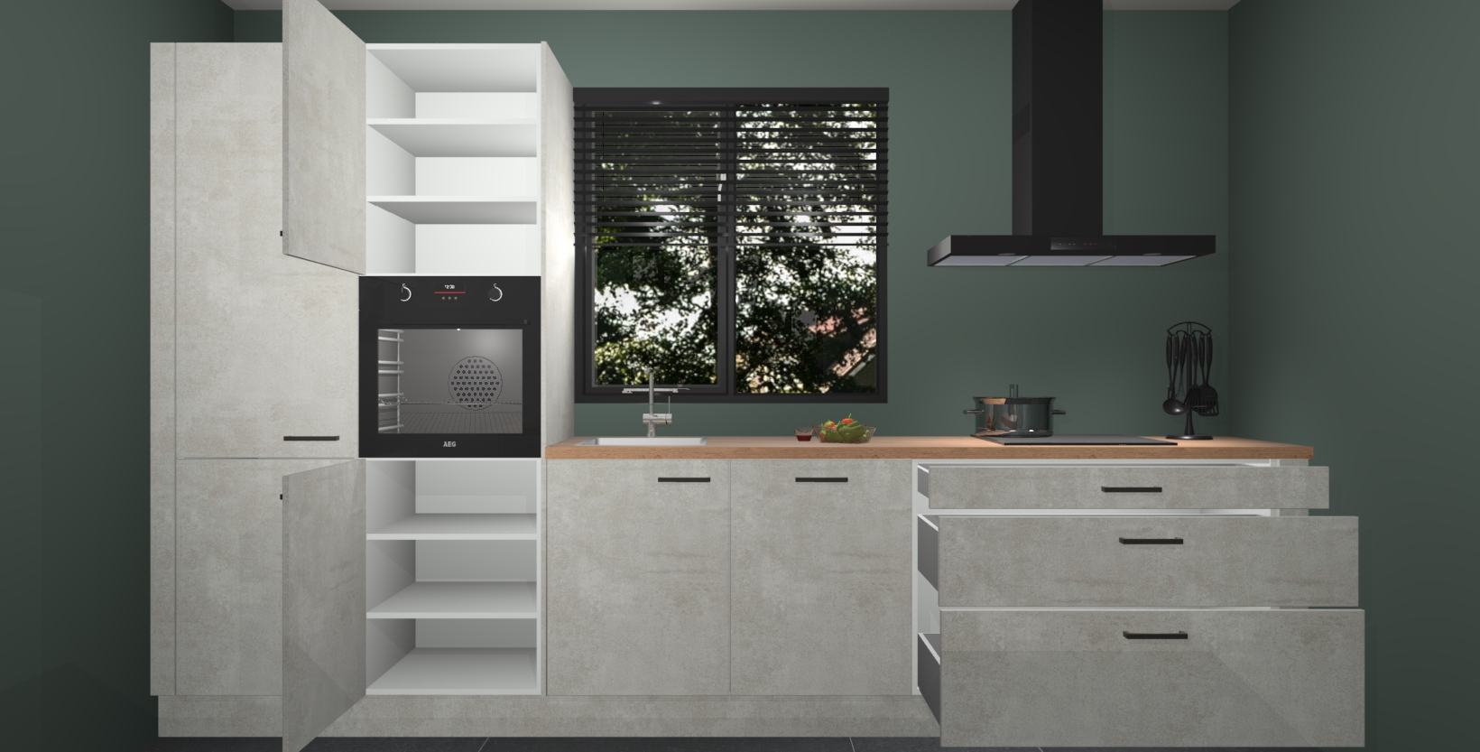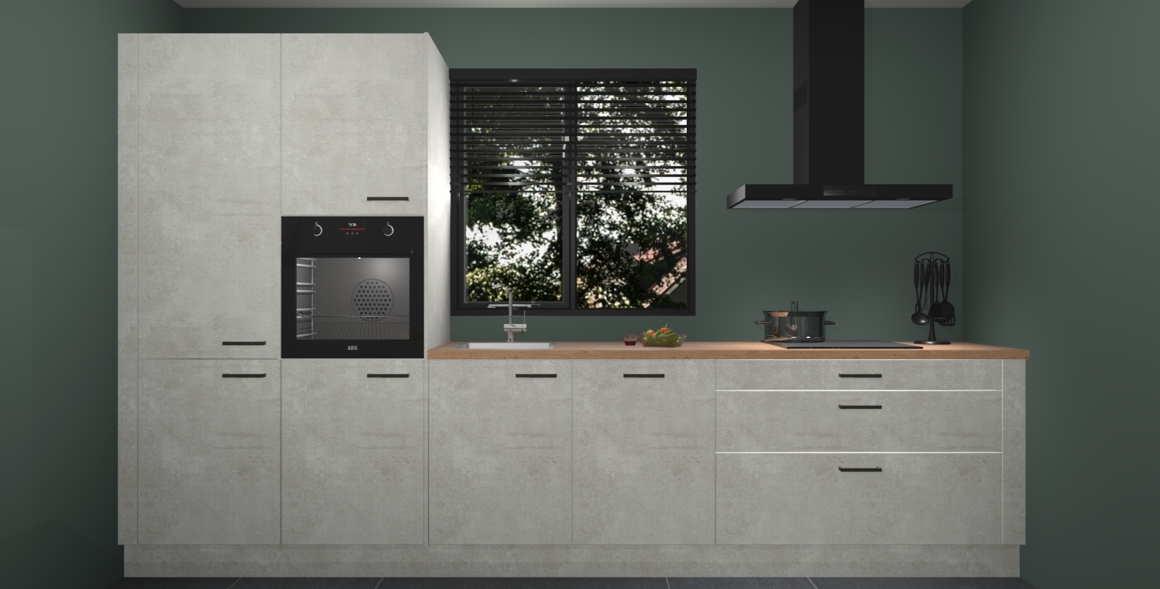 Maak kennis met de beton opaal keuken Bonaire: de perfecte balans tussen tijdloos en modern. Met voldoende opbergruimte zal deze keuken de afgunst van uw vrienden en familie zijn, terwijl uw leven moeiteloos georganiseerd en rommelvrij blijft.