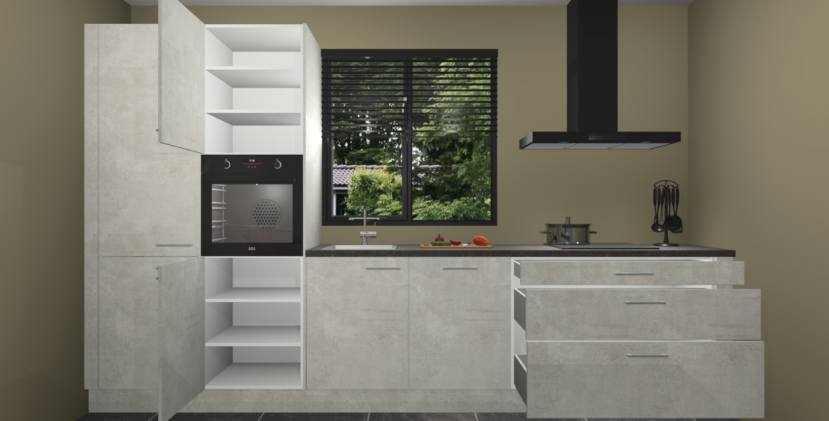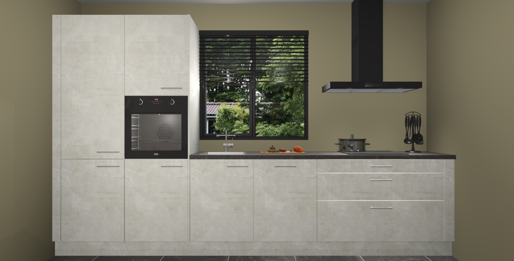 Maak kennis met de beton opaal keuken Bonaire: de perfecte balans tussen tijdloos en modern. Met voldoende opbergruimte zal deze keuken de afgunst van uw vrienden en familie zijn, terwijl uw leven moeiteloos georganiseerd en rommelvrij blijft.