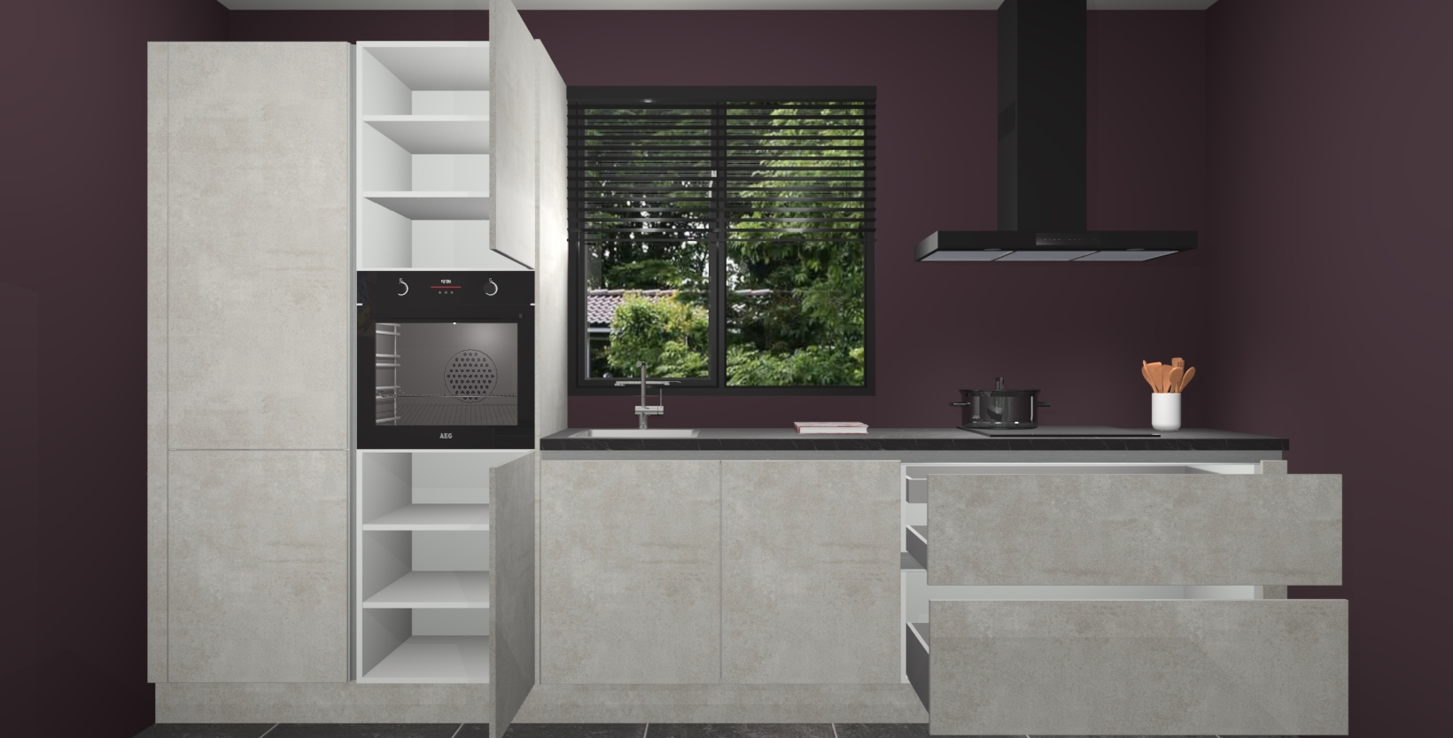Maak kennis met de beton opaal keuken Bonaire: de perfecte balans tussen tijdloos en modern. Met voldoende opbergruimte zal deze keuken de afgunst van uw vrienden en familie zijn, terwijl uw leven moeiteloos georganiseerd en rommelvrij blijft.