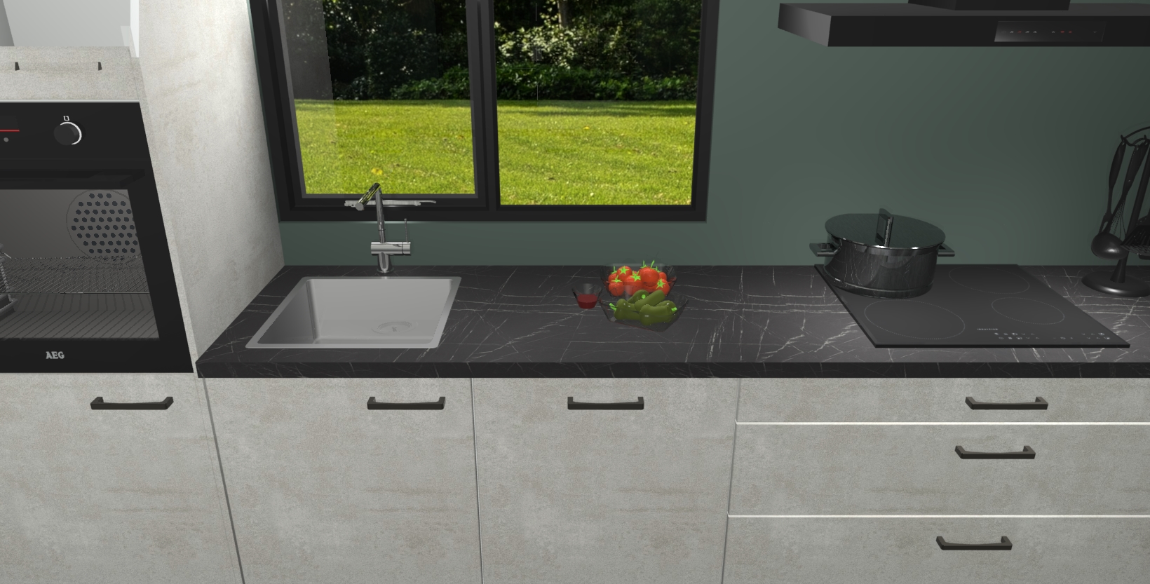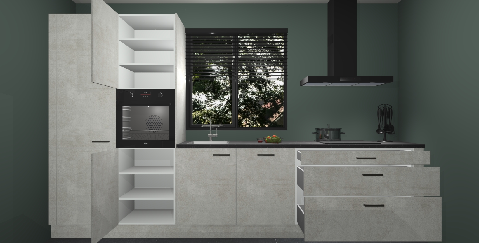 Maak kennis met de beton opaal keuken Bonaire: de perfecte balans tussen tijdloos en modern. Met voldoende opbergruimte zal deze keuken de afgunst van uw vrienden en familie zijn, terwijl uw leven moeiteloos georganiseerd en rommelvrij blijft.