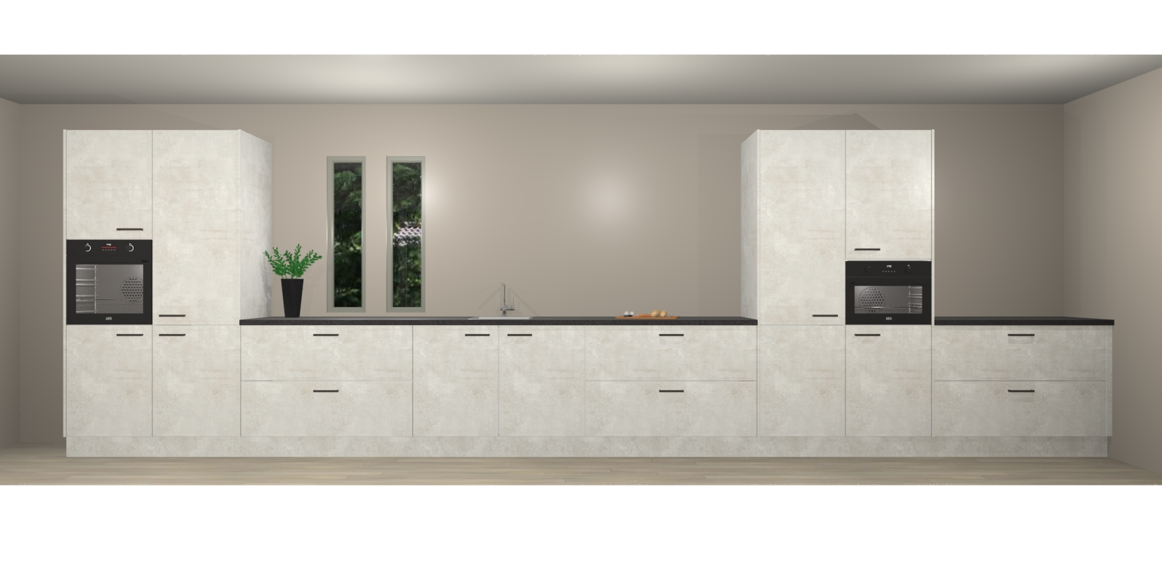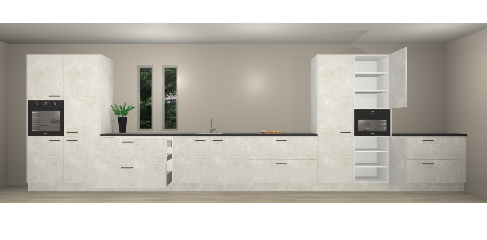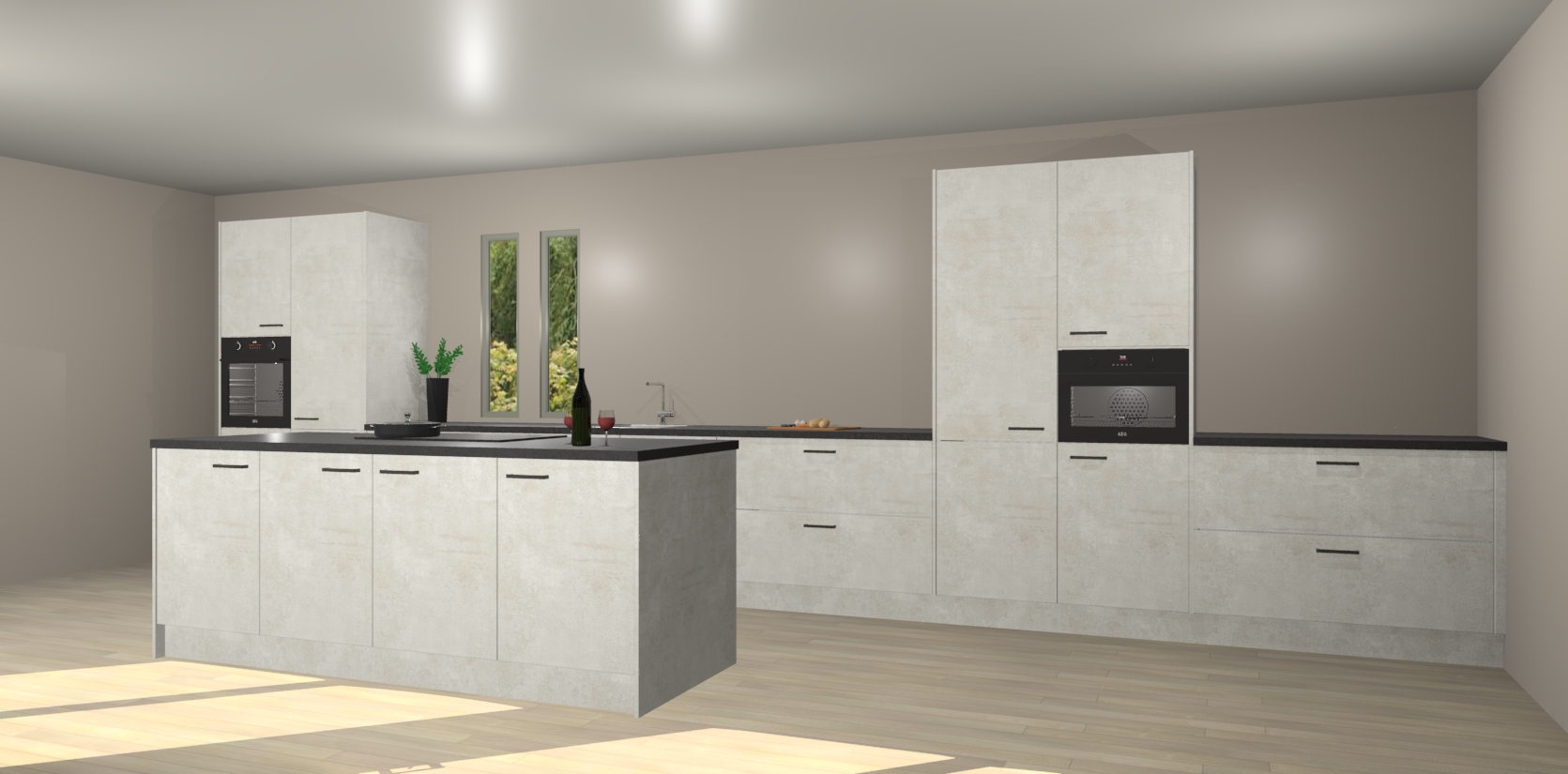 De perfecte toevoeging aan uw droomkeuken! De beton opaal keuken Krakor is een opmerkelijke en verfijnde keuken. Hij is ontworpen met moderne lijnen en tijdloze schoonheid die garant staan voor een luxe uitstraling. Deze uiterst functionele en mooie keuken heeft een reeks verbazingwekkende functies: de overvloedige opbergruimte bevat soft close deuren, terwijl vijf inbouwapparaten zijn inbegrepen in de vaste lage prijs. Beter nog, uw beton opaal keuken Krakor bestellen duurt slechts 7 weken met levering van voorgemonteerde kasten.
