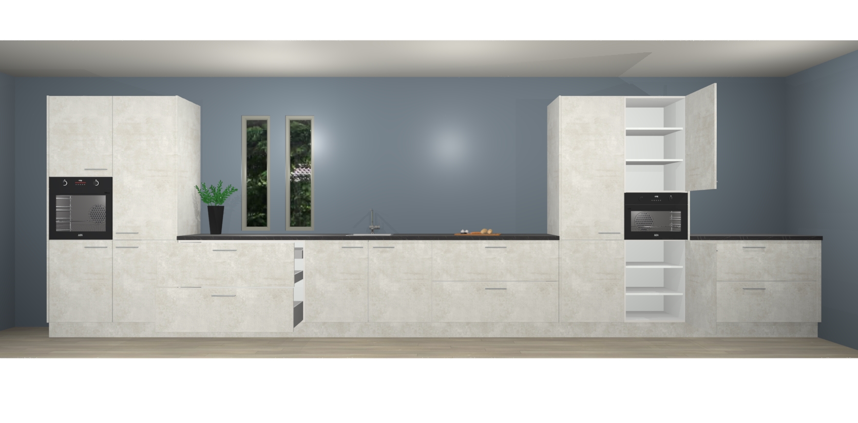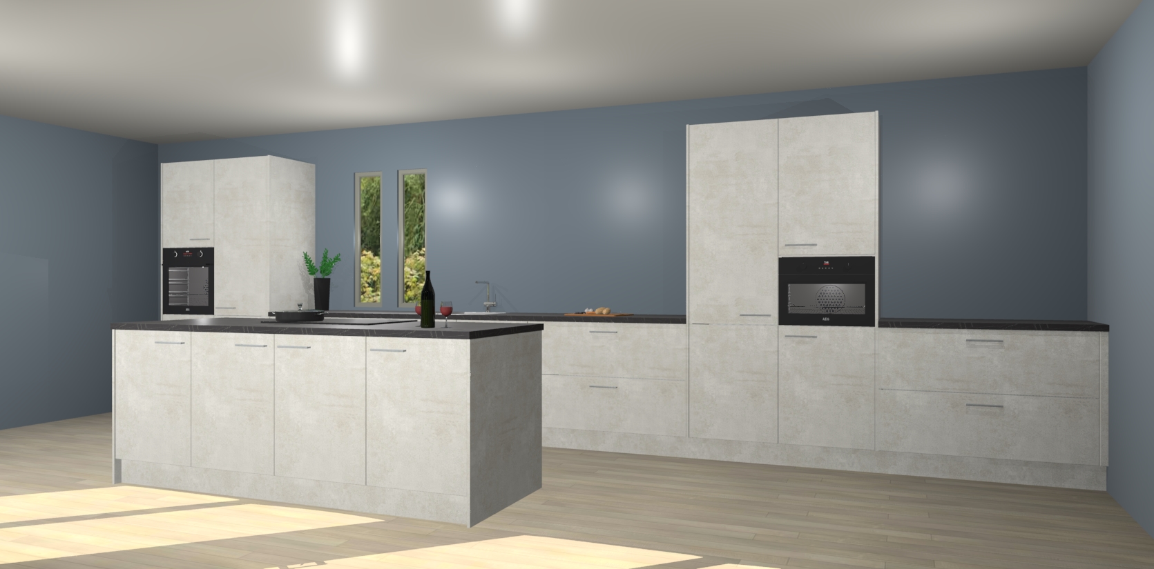 De perfecte toevoeging aan uw droomkeuken! De beton opaal keuken Krakor is een opmerkelijke en verfijnde keuken. Hij is ontworpen met moderne lijnen en tijdloze schoonheid die garant staan voor een luxe uitstraling. Deze uiterst functionele en mooie keuken heeft een reeks verbazingwekkende functies: de overvloedige opbergruimte bevat soft close deuren, terwijl vijf inbouwapparaten zijn inbegrepen in de vaste lage prijs. Beter nog, uw beton opaal keuken Krakor bestellen duurt slechts 7 weken met levering van voorgemonteerde kasten.