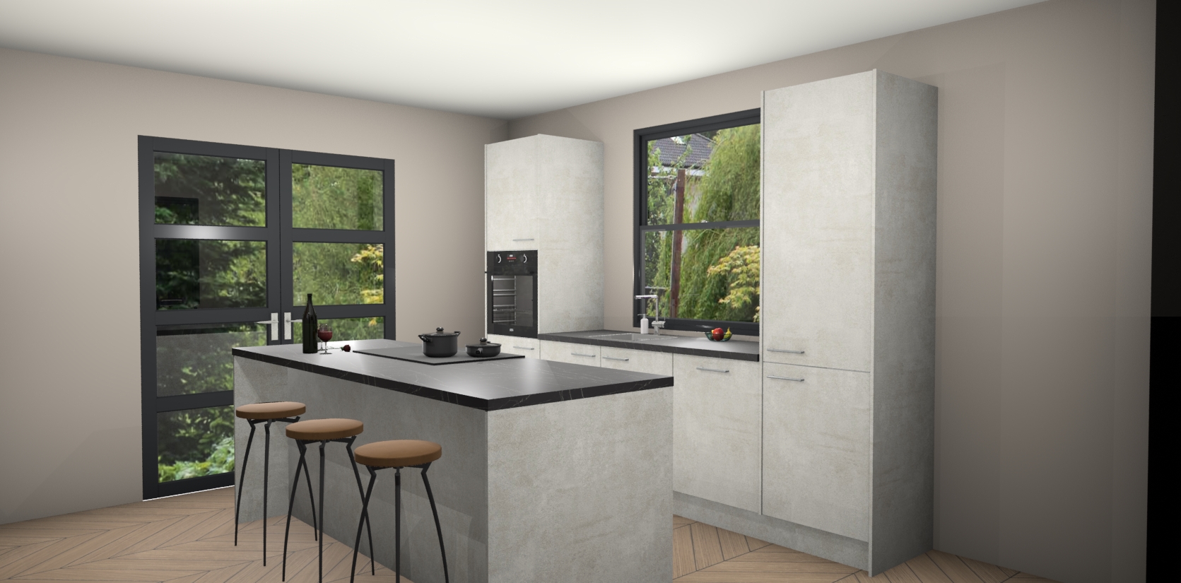 Welkom bij de Beton opaal keuken Los Angeles! Deze moderne en toch tijdloze keuken is zorgvuldig ontworpen voor u en uw huis. Met zijn lichte betonlook biedt hij een geraffineerde basis voor uw dagelijkse kookbehoeften.