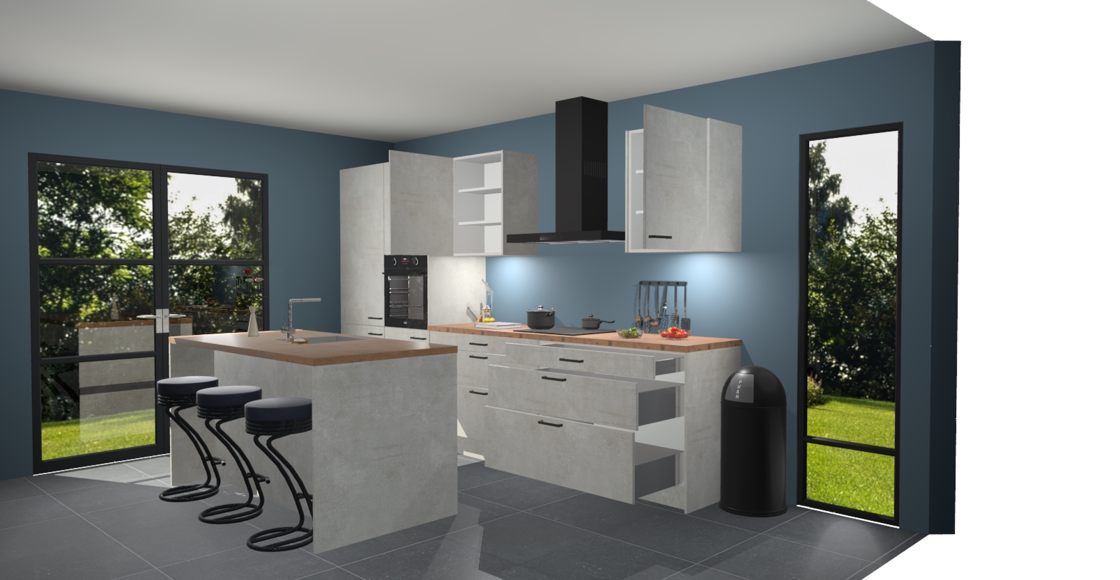 Inclusief plinten, stelpoten en werkblad