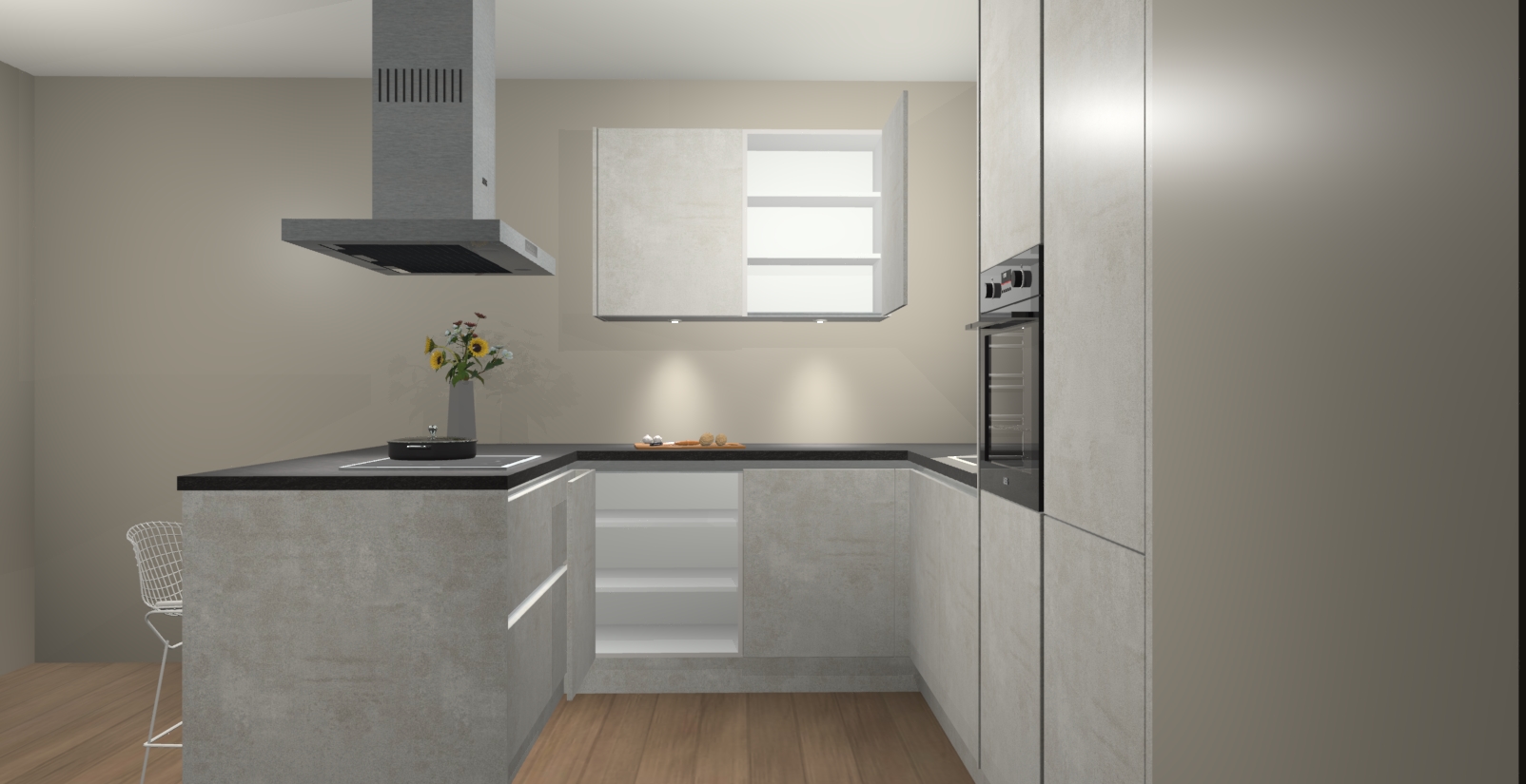 De perfecte toevoeging aan uw droomkeuken! De Beton Opal greeploze keuken Kalisz is een opmerkelijke en verfijnde keuken. Hij is ontworpen met moderne lijnen en tijdloze schoonheid die garant staan voor een luxe uitstraling. Deze uiterst functionele en mooie keuken heeft een reeks verbazingwekkende functies: de overvloedige opbergruimte bevat soft close deuren, terwijl vijf inbouwapparaten zijn inbegrepen in de vaste lage prijs. Beter nog, uw Beton Opal greeploze  keuken Kalisz bestellen duurt slechts 7 weken met levering van voorgemonteerde kasten.