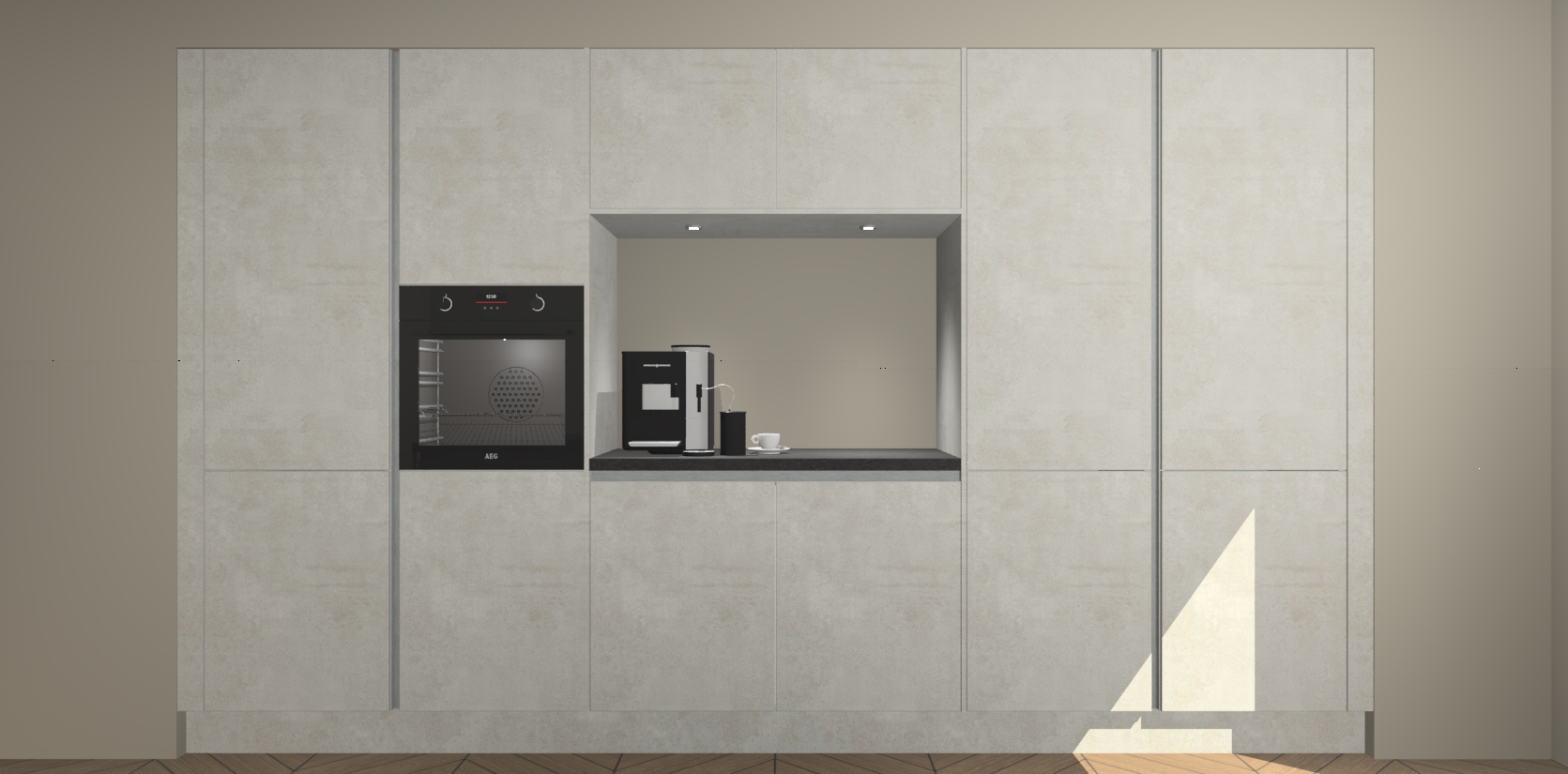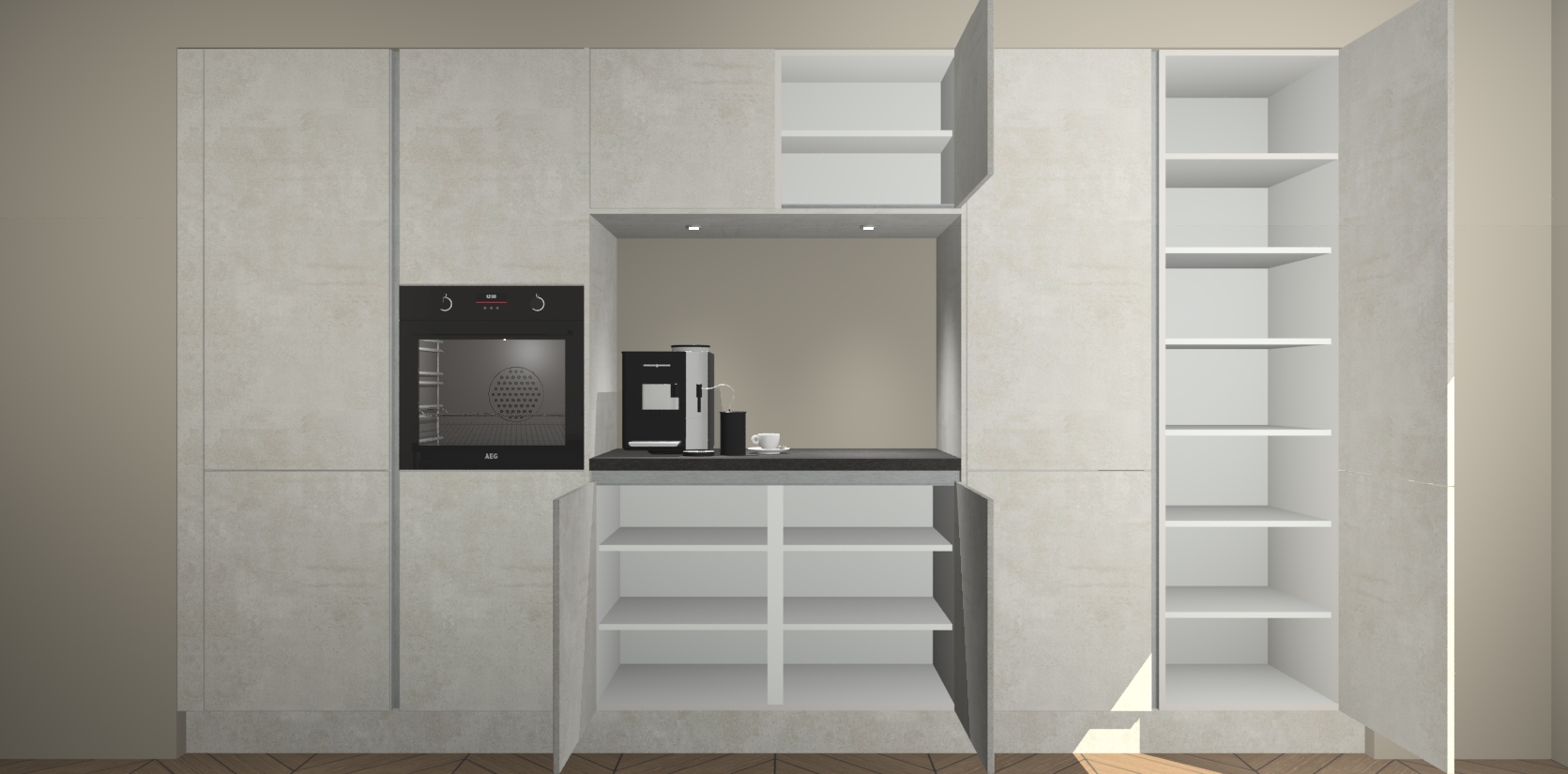 De Beton Opal greeploze keuken Lodz wordt geleverd met een set van 5 ingebouwde apparaten: Een oven, inductiekookplaat, afzuigkap, vaatwasser en koelkast. Deze kunnen gemakkelijk worden opgewaardeerd naar AEG. Met de gegarandeerde lage prijs en de snelle levering van 7 weken kan u er op rekenen dat de Beton Opal greeploze keuken Lodz zo snel mogelijk uw huis bereikt!